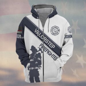 Custom Name & Fire Department Proud To Have Serve Firefighter #DQH0298 – Zip Hoodie