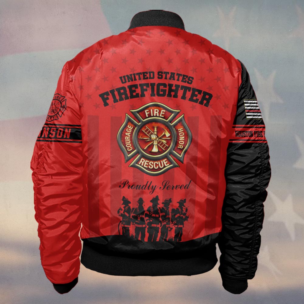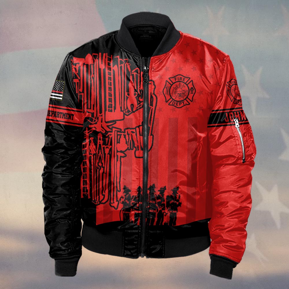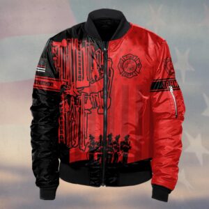 Custom Name & Fire Department Proudly Served Firefighter Red Edition #DQH0355 – Bomber Jacket