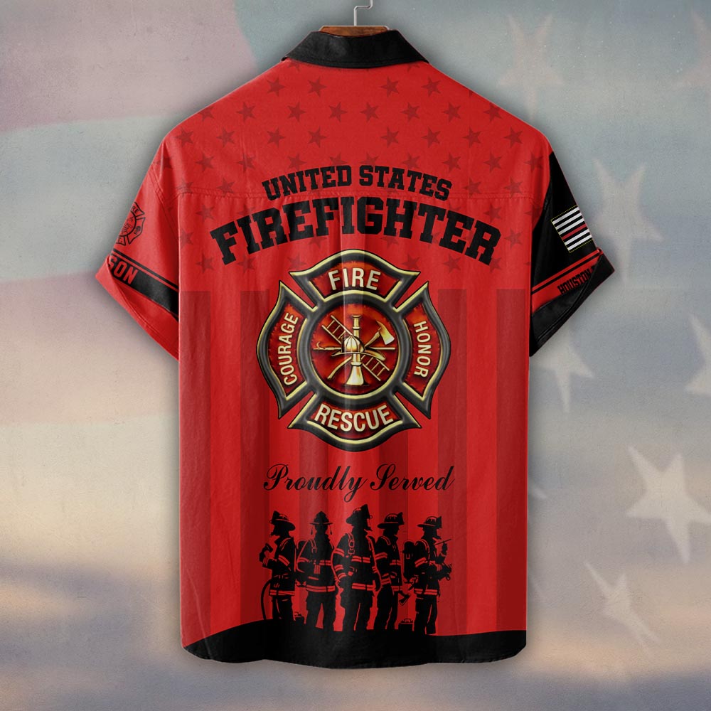 Custom Name & Fire Department Proudly Served Firefighter Red Edition #DQH0355 – Short Sleeve Button Shirt