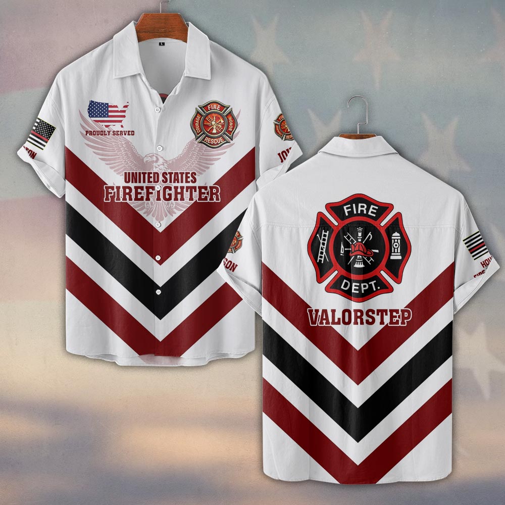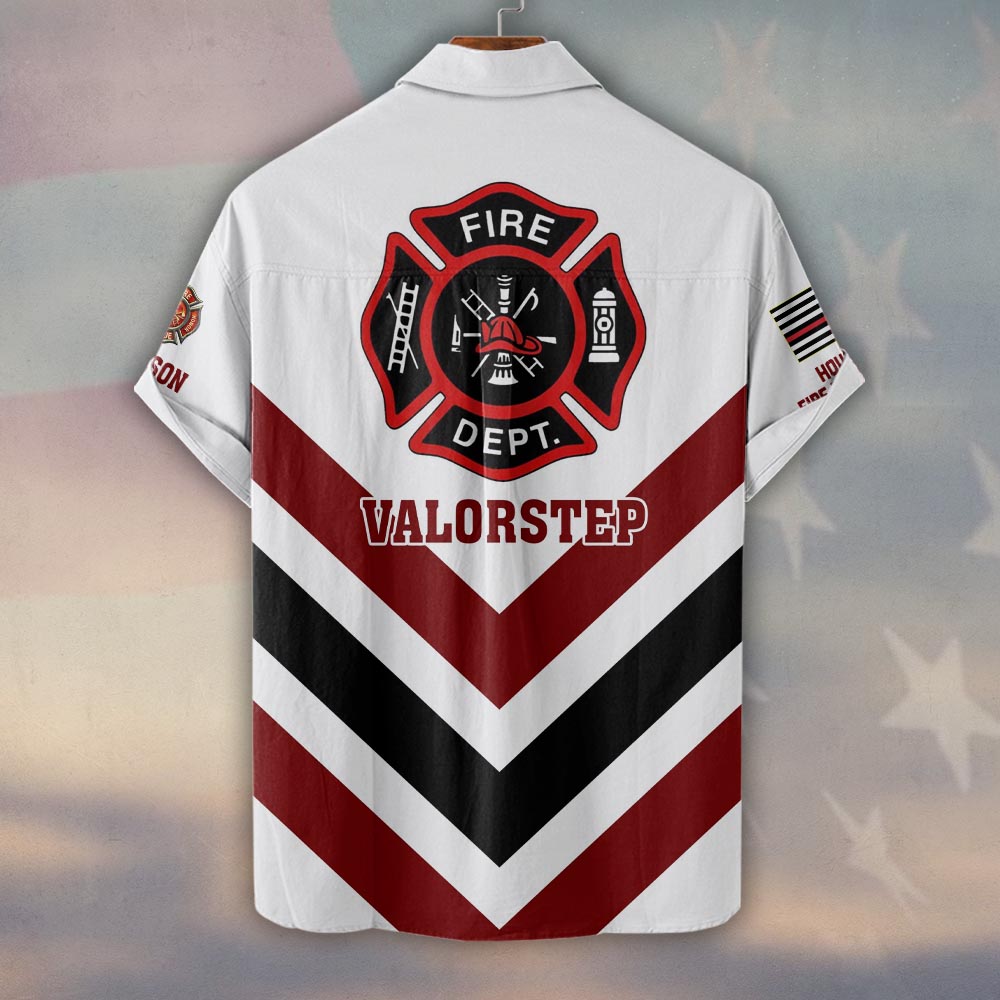 Custom Name & Fire Department Proudly Served Valorstep Firefighter #DQH0351 – Short Sleeve Button Shirt