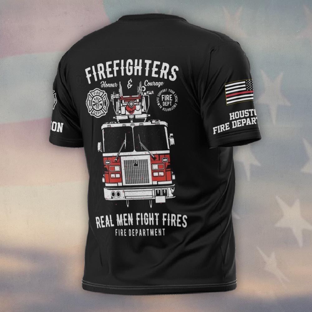 Custom Name & Fire Department Real Men Fight Fires #DQH0390 – T-shirt