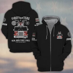 Custom Name & Fire Department Real Men Fight Fires #DQH0390 – Zip Hoodie