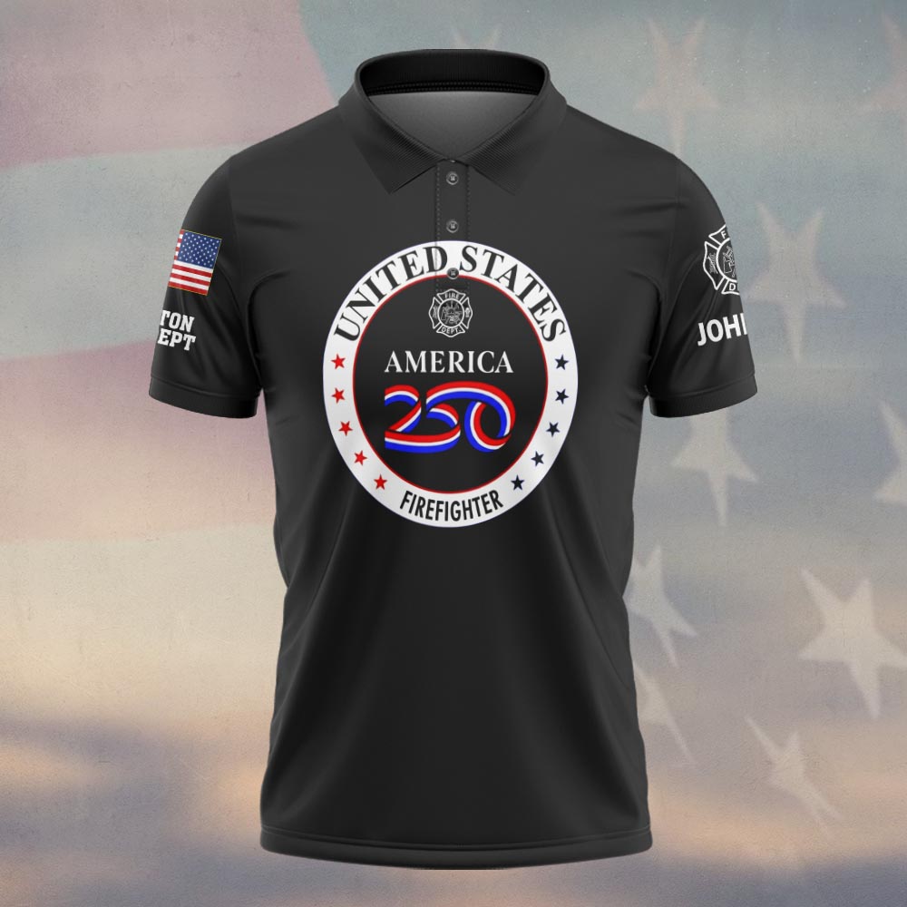 Custom Name & Fire Department USA 250 Firefighter Edition #DQH0436 – Polo