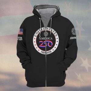 Custom Name & Fire Department USA 250 Firefighter Edition #DQH0436 – Zip Hoodie