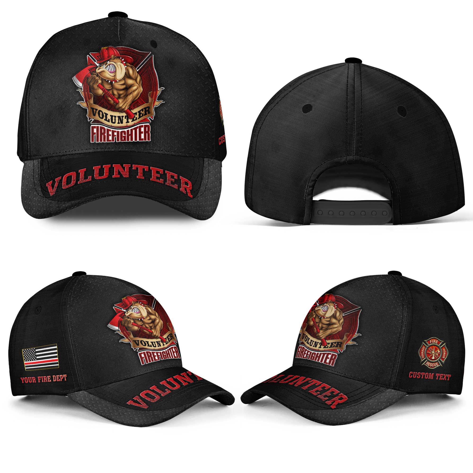 Custom Name Fire Department Volunteer Firefighter #DQH0012 – Hat All Over Printed