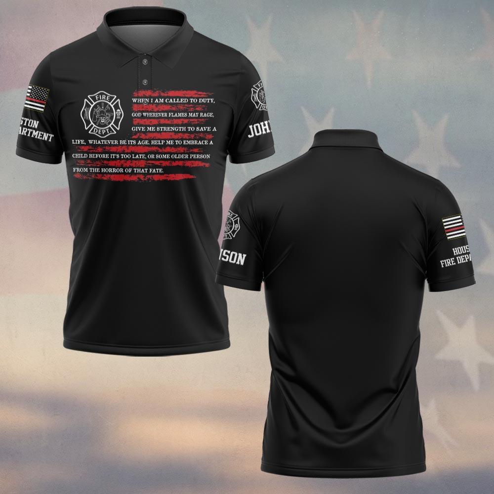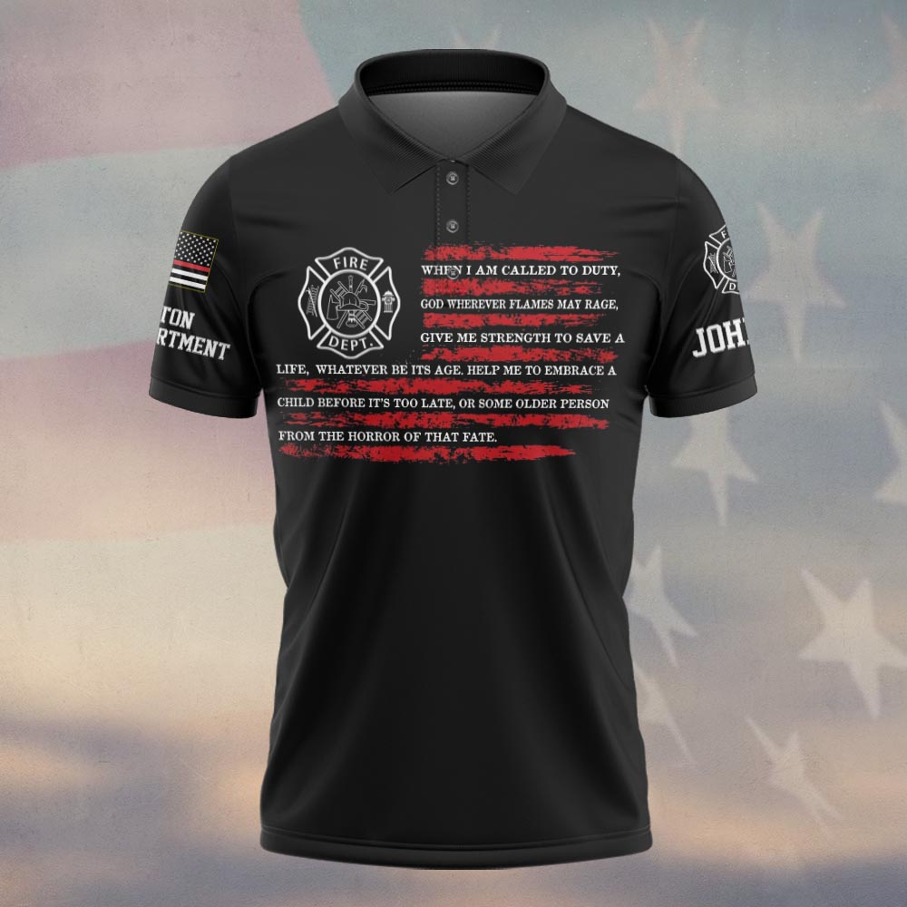 Custom Name & Fire Department When I Am Called To Duty Firefighter Prayer #DQH0377 – Polo
