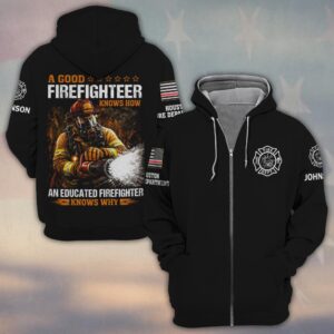 Custom Name & Fire Dept A Good Firefighter Knows How An Educated Firefighter Knows Why #DQH0394 – Zip Hoodie