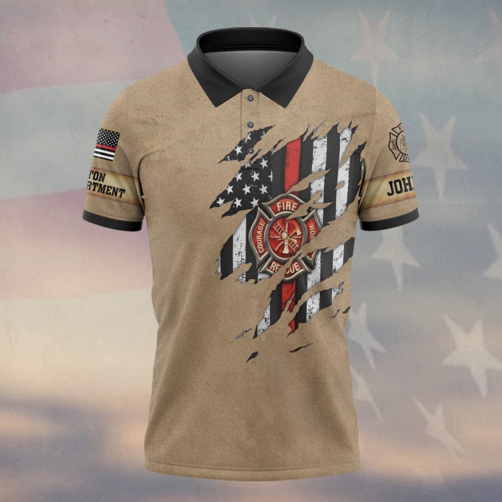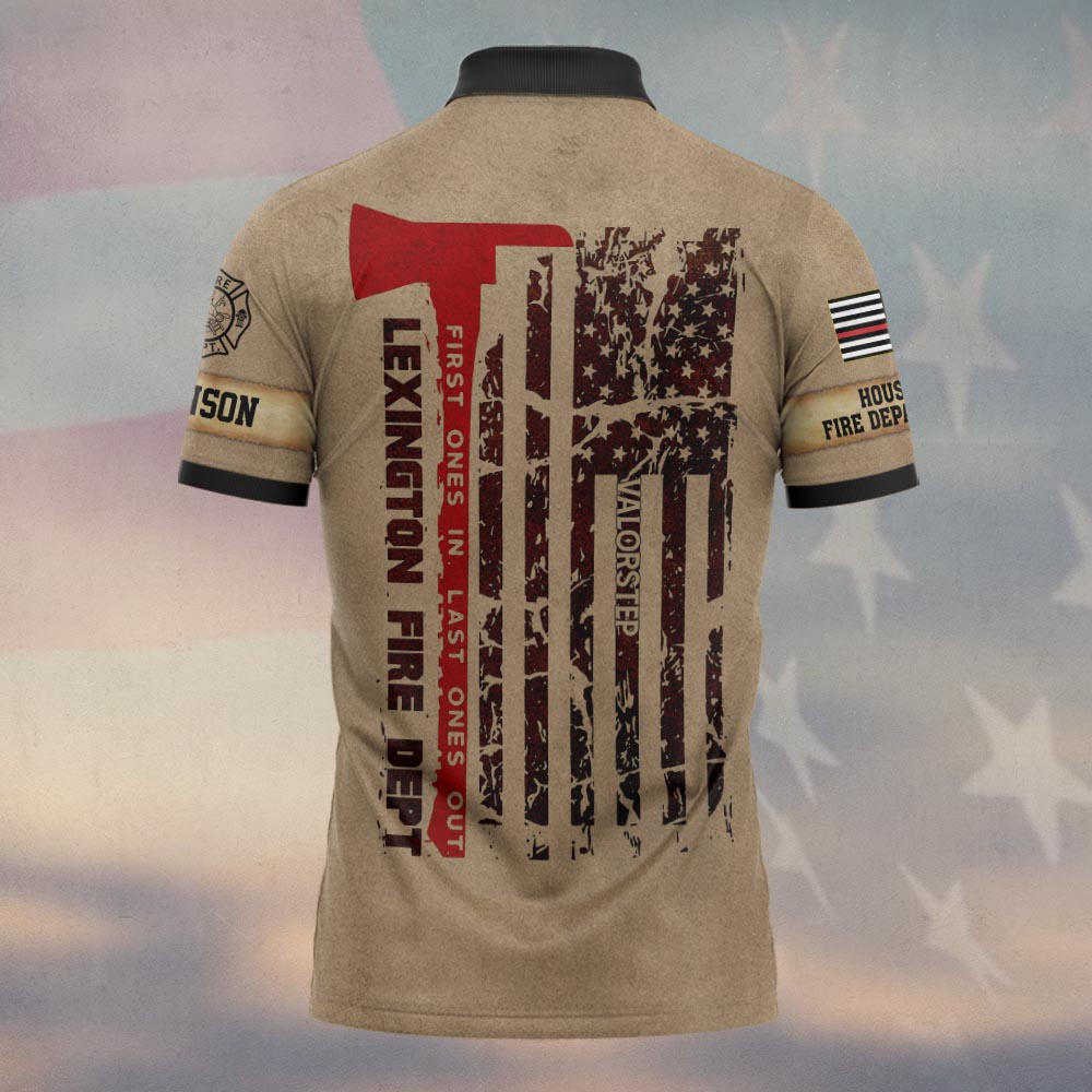 Custom Name & Fire Dept Firefighter Axe Flag – Tactical Tan Edition #DQH0292 – Polo