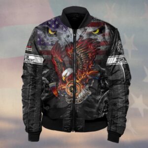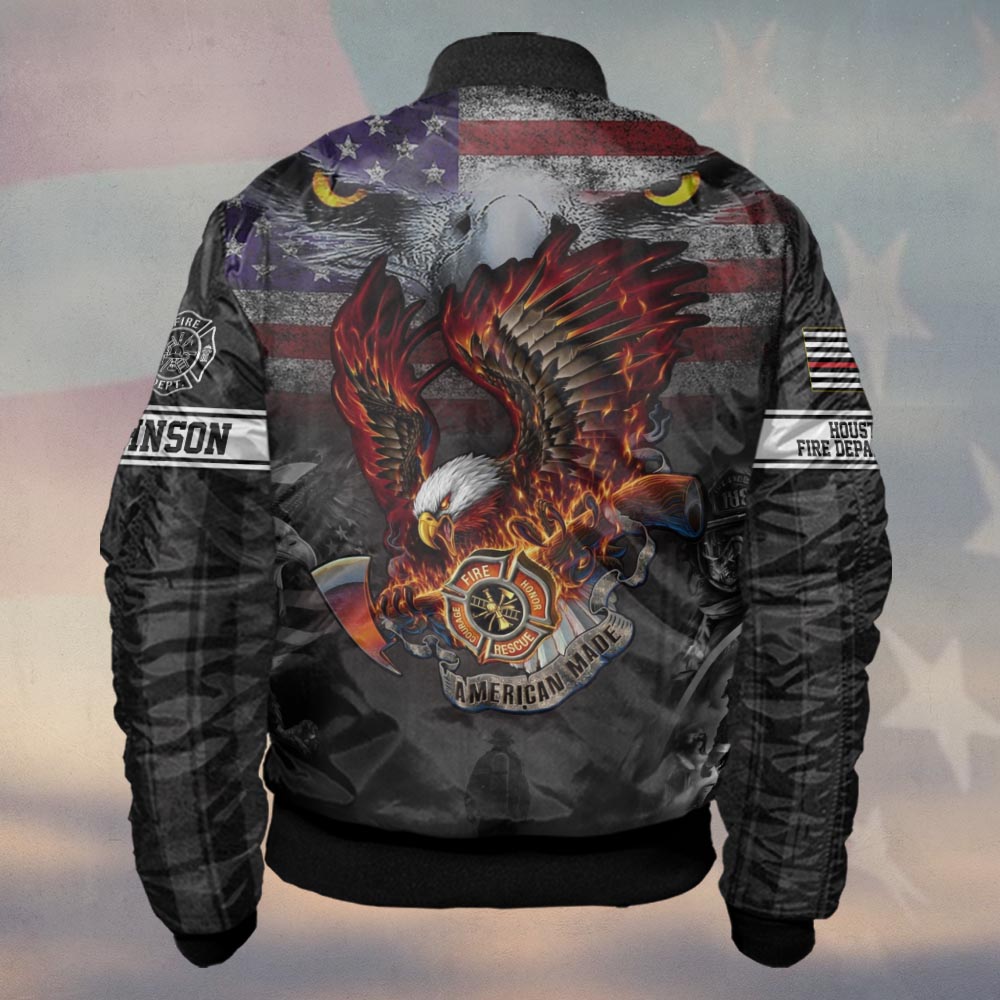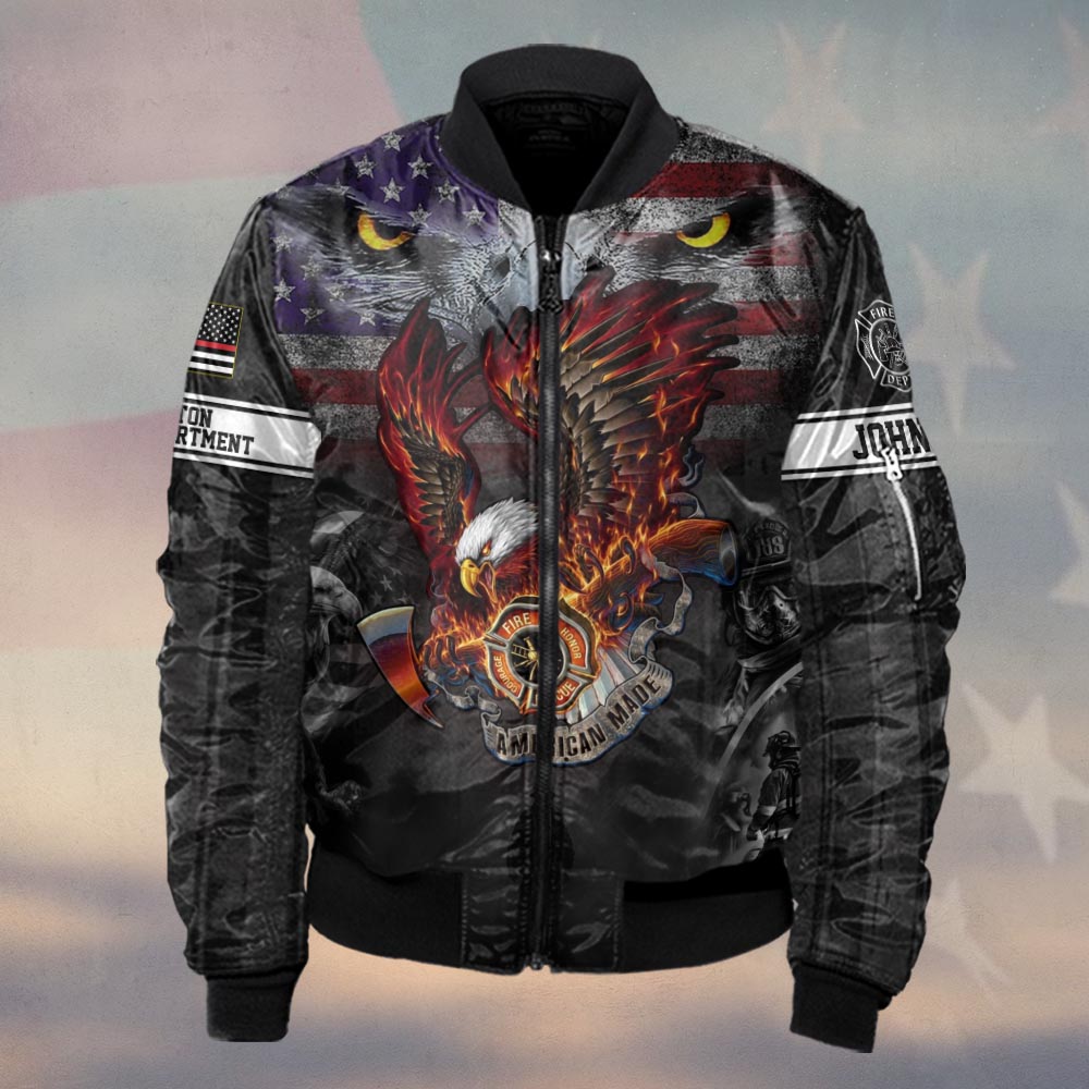 Custom Name & Fire Dept Patriotic Eagle Blaze Firefighter #DQH0273 – Bomber Jacket