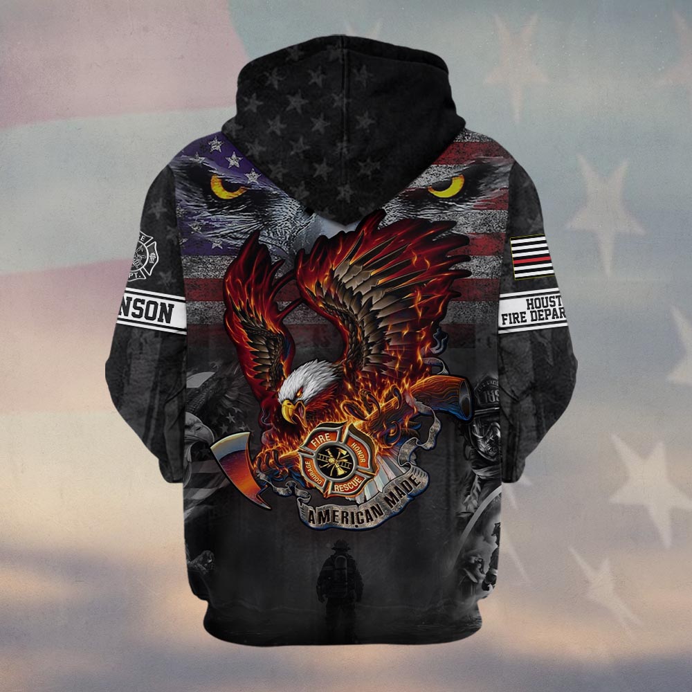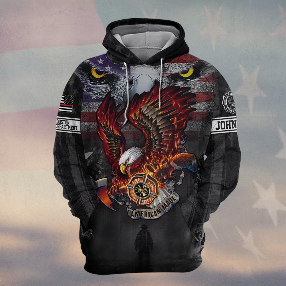Custom Name & Fire Dept Patriotic Eagle Blaze Firefighter #DQH0273 – Hoodie