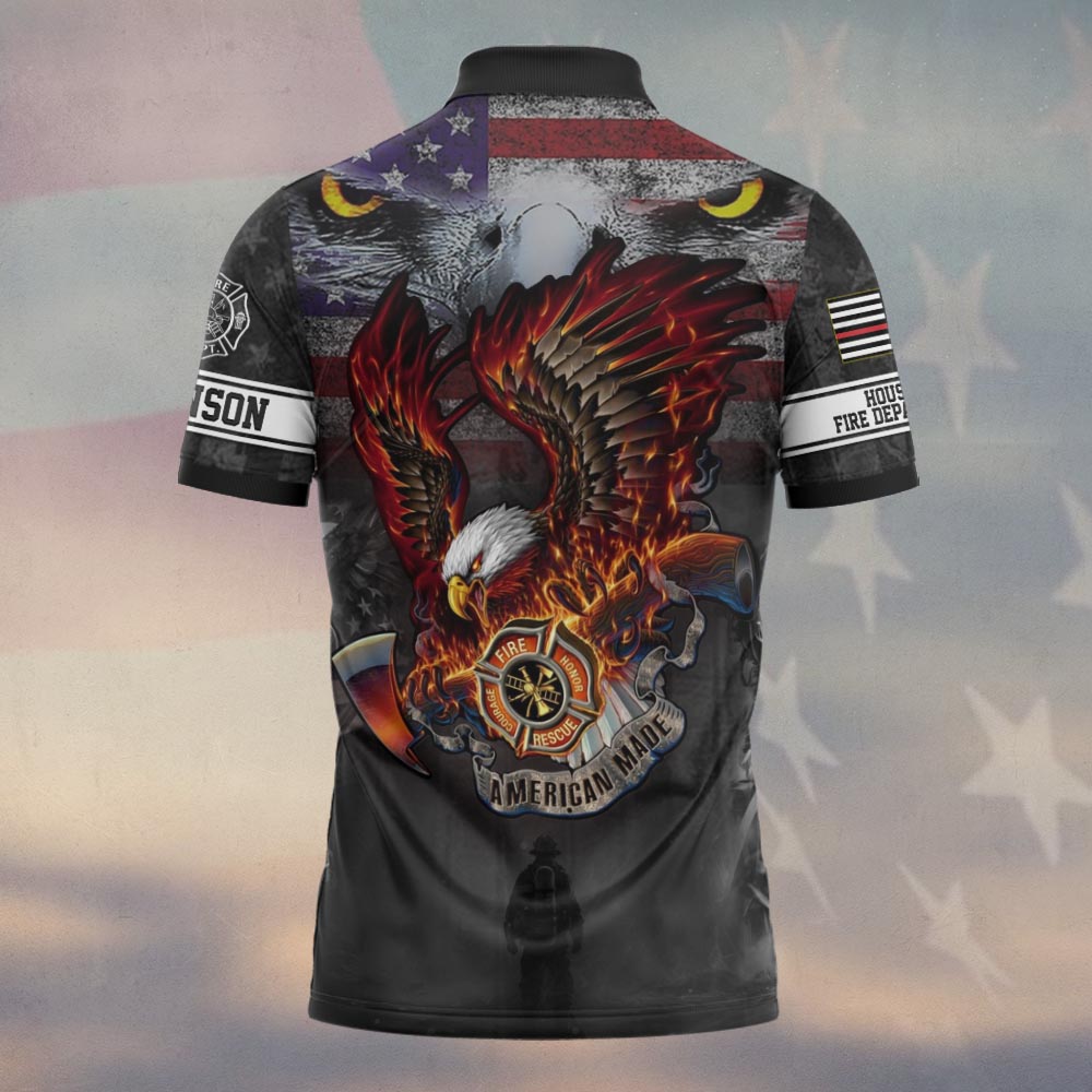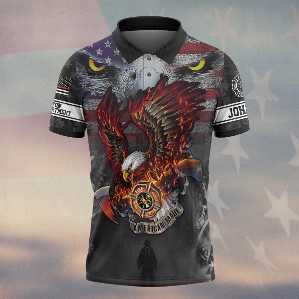 Custom Name & Fire Dept Patriotic Eagle Blaze Firefighter #DQH0273 – Polo
