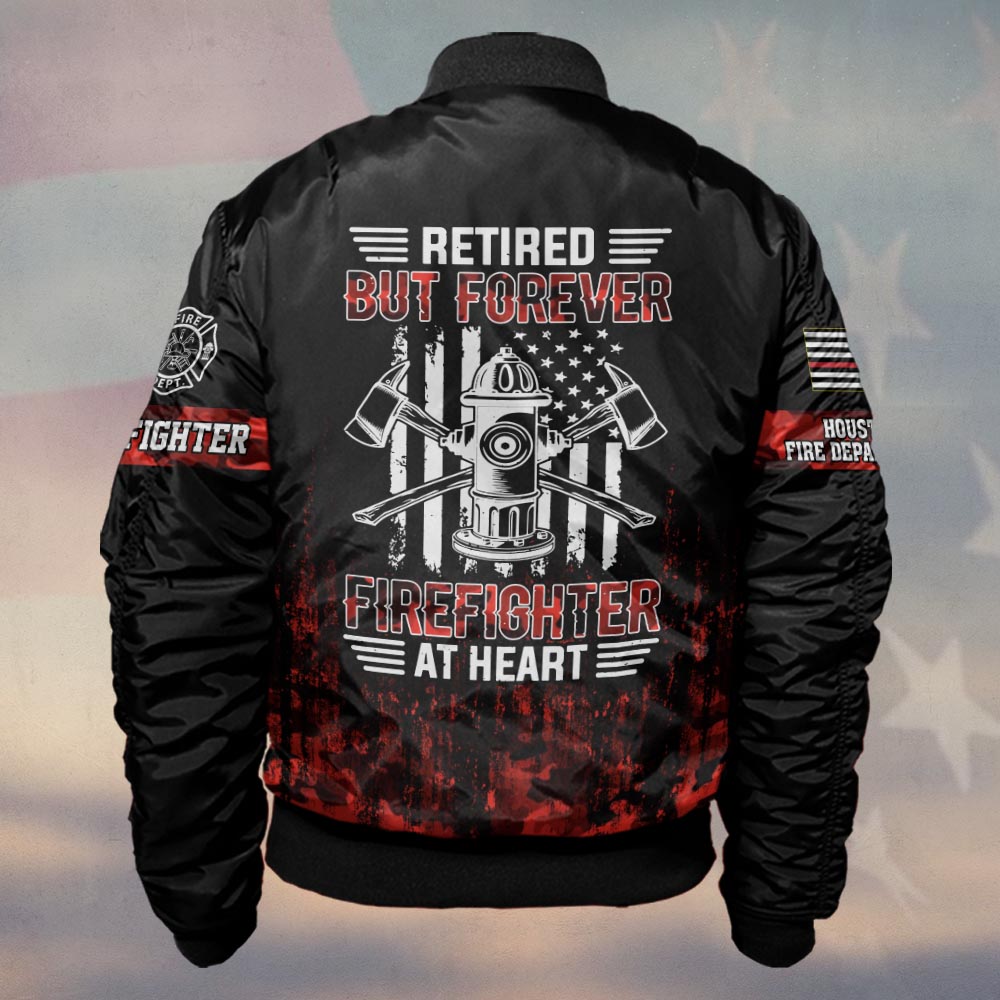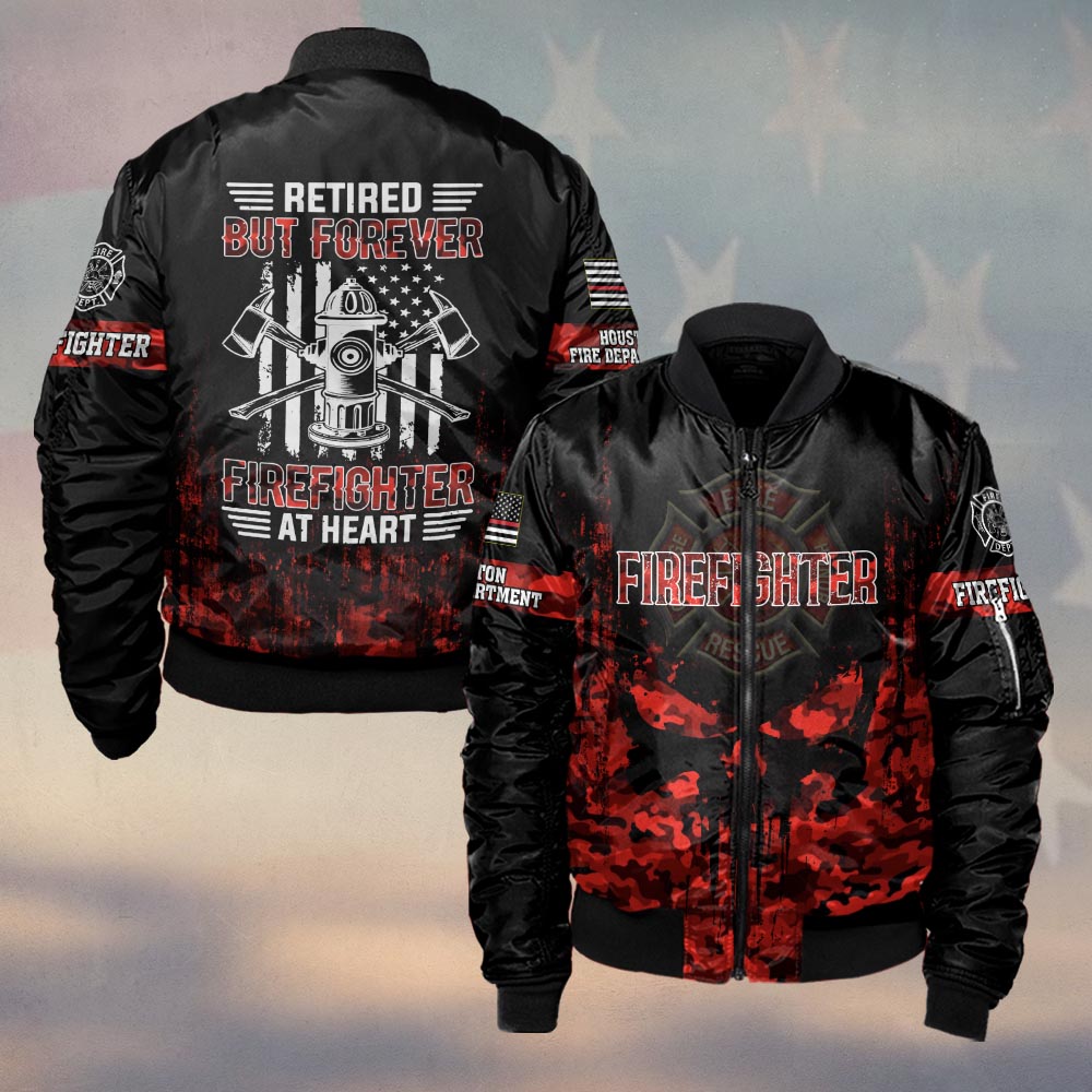 Custom Name & Fire Dept Retired Firefighter – Red Camo Honor Edition #DQH0289 – Bomber Jacket