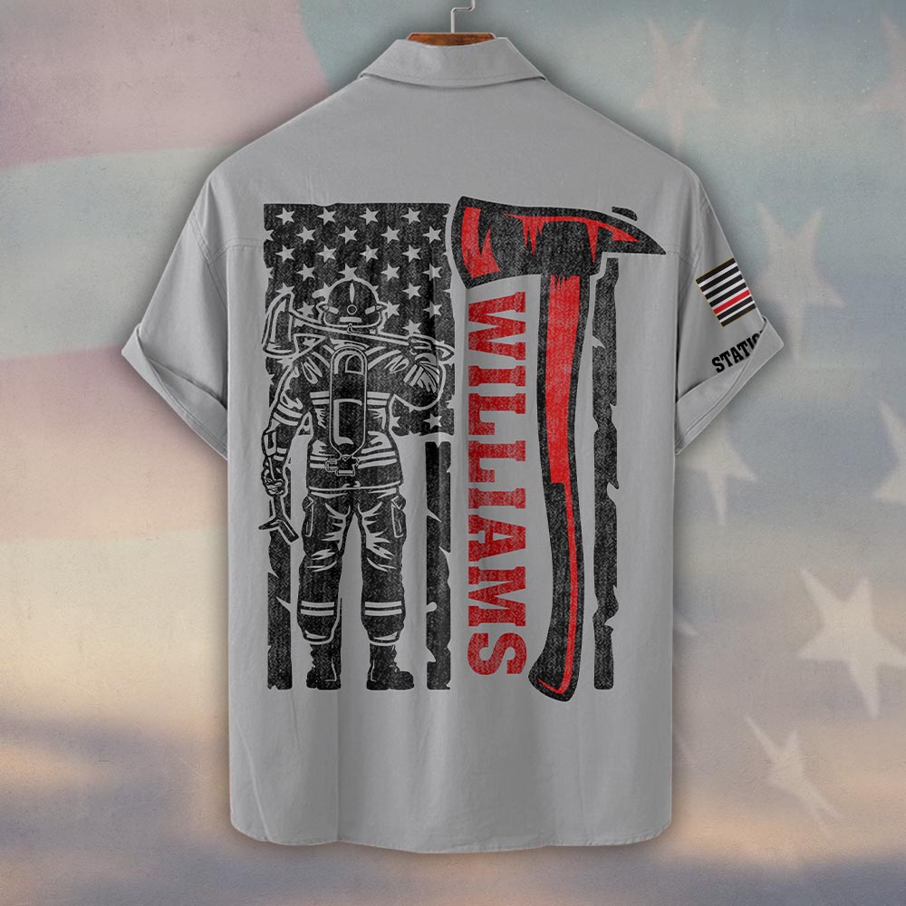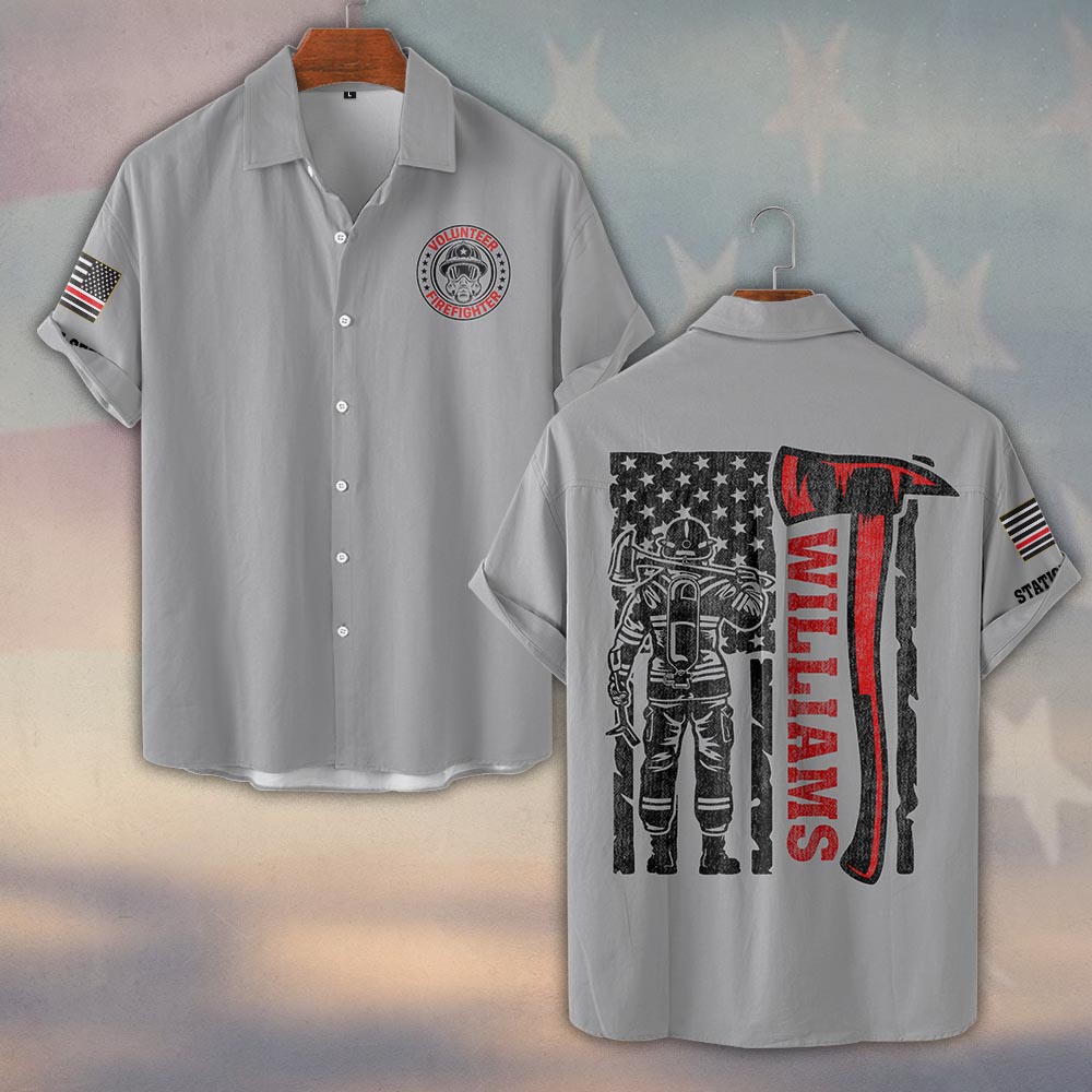 Custom Name & Fire Dept Volunteer Strong – Tillman Axe #DQH0397 – Short Sleeve Button Shirt