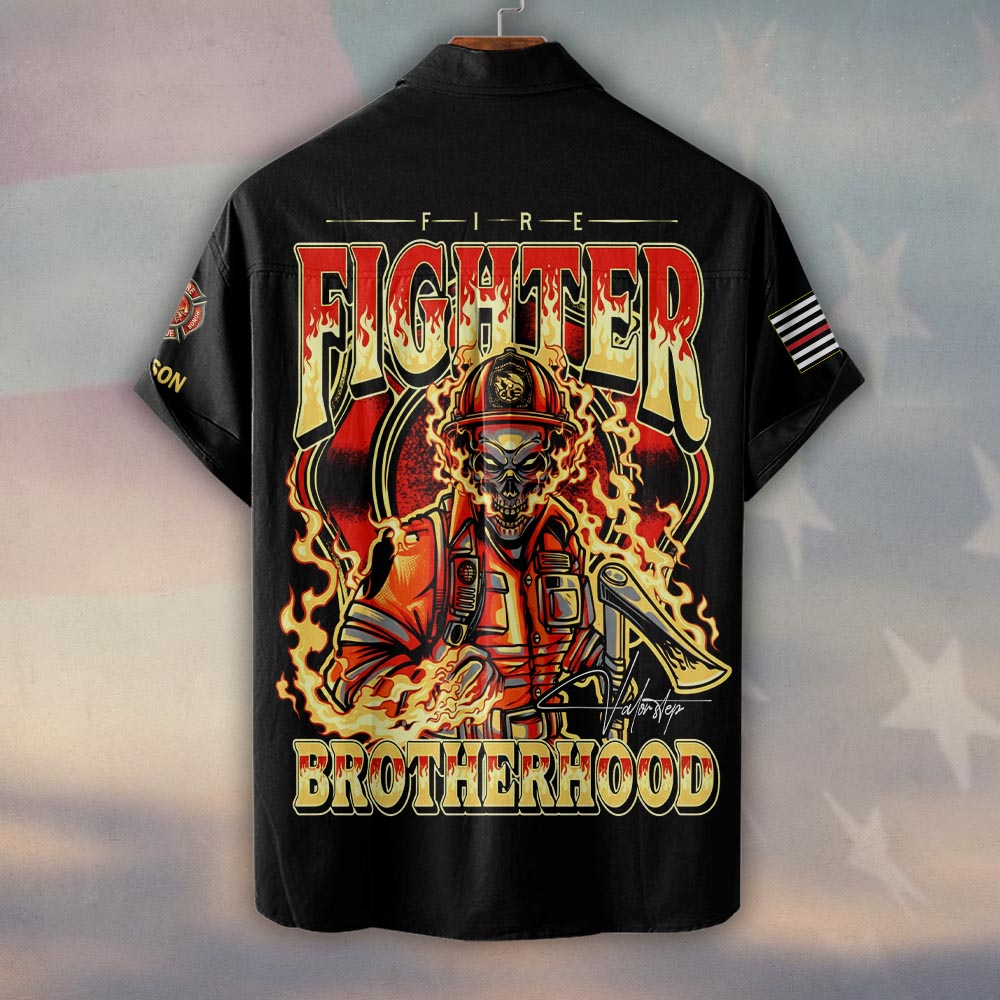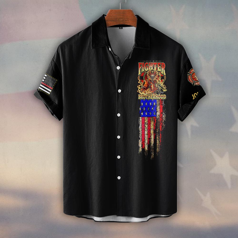 Custom Name Firefighter Brotherhood #DQH0188 – Short Sleeve Button Shirt