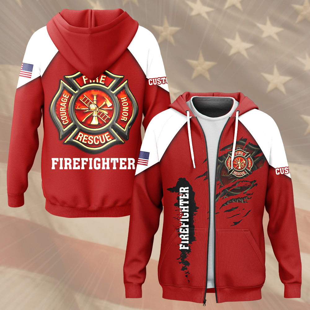 Custom Name Firefighter Courage Rescue Honor #DQH0016 – Zip Hoodie