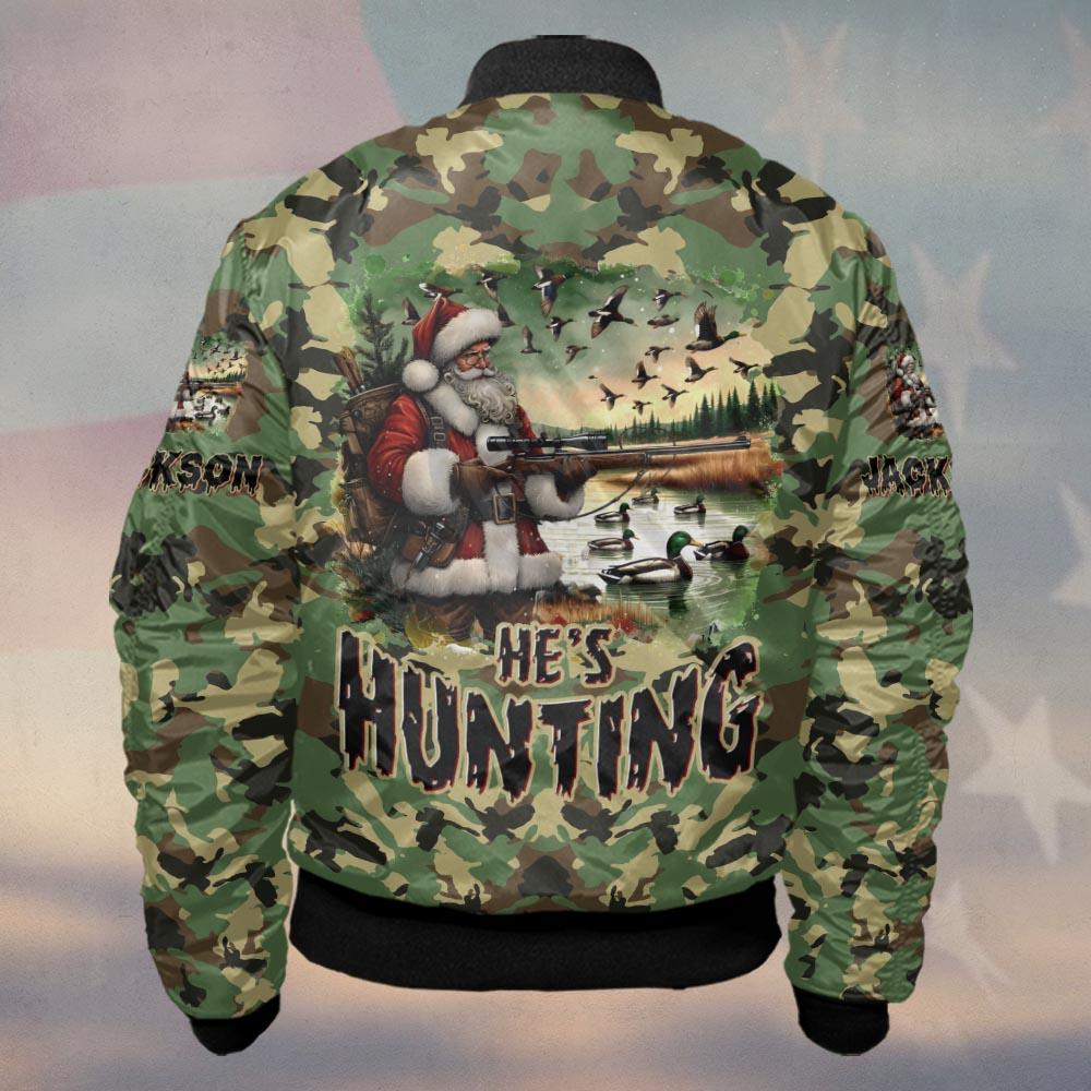 Custom Name He’s Hunting Santa Hunting Season #DQH0251 – Bomber Jacket