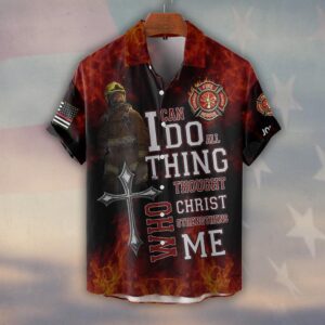 Custom Name I Can Do All Things Through Christ Firefighter #DQH0201 – Short Sleeve Button Shirt