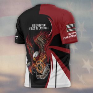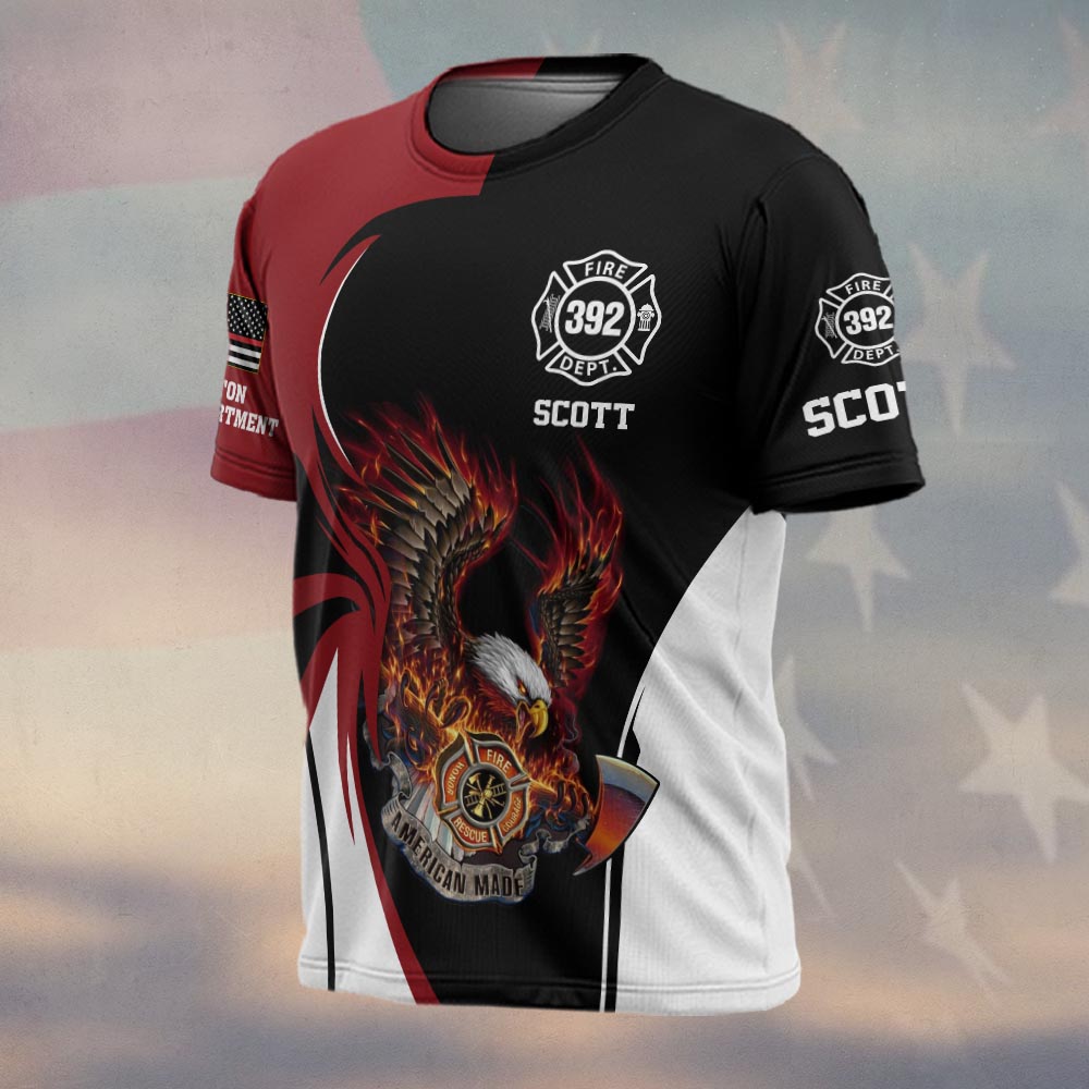 Be the first to review “Custom Name, Number & Dept Patriotic Eagle Blaze – Split Red/Black #DQH0287 – T-shirt”
