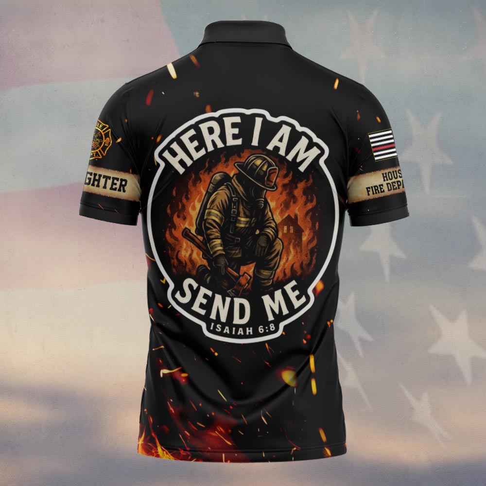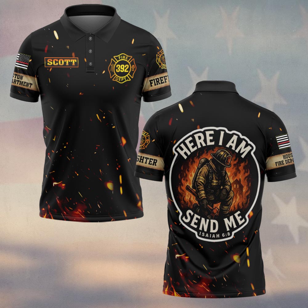 Custom Name & Number & Fire Department Here I Am, Send Me Isaiah 6:8 #DQH0372 – Polo