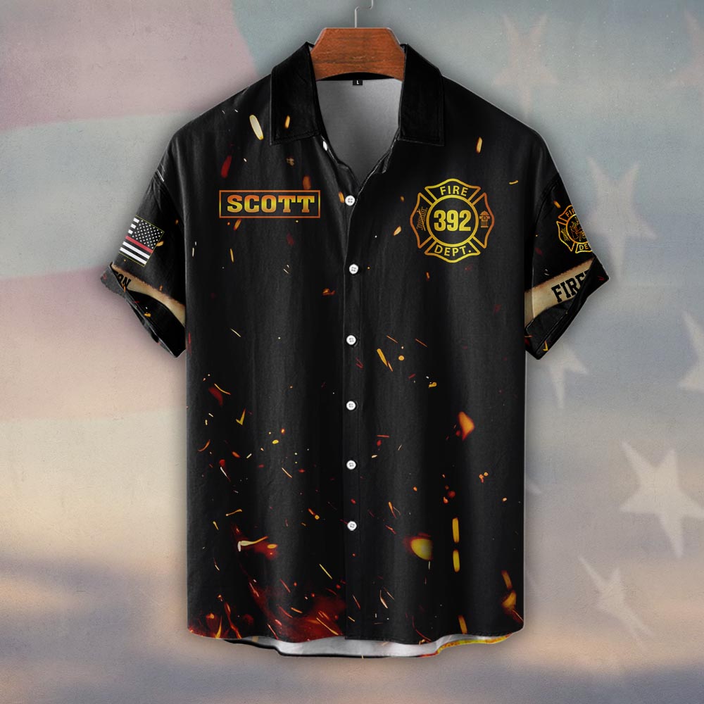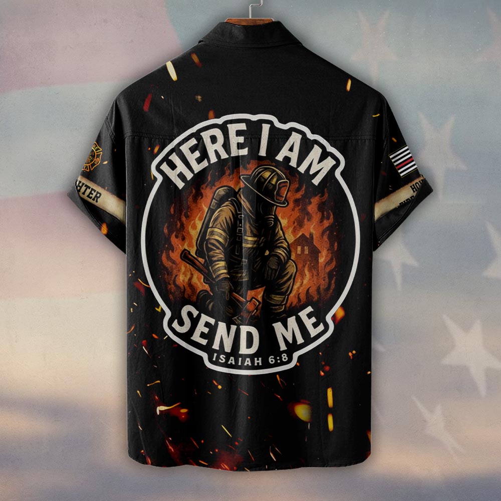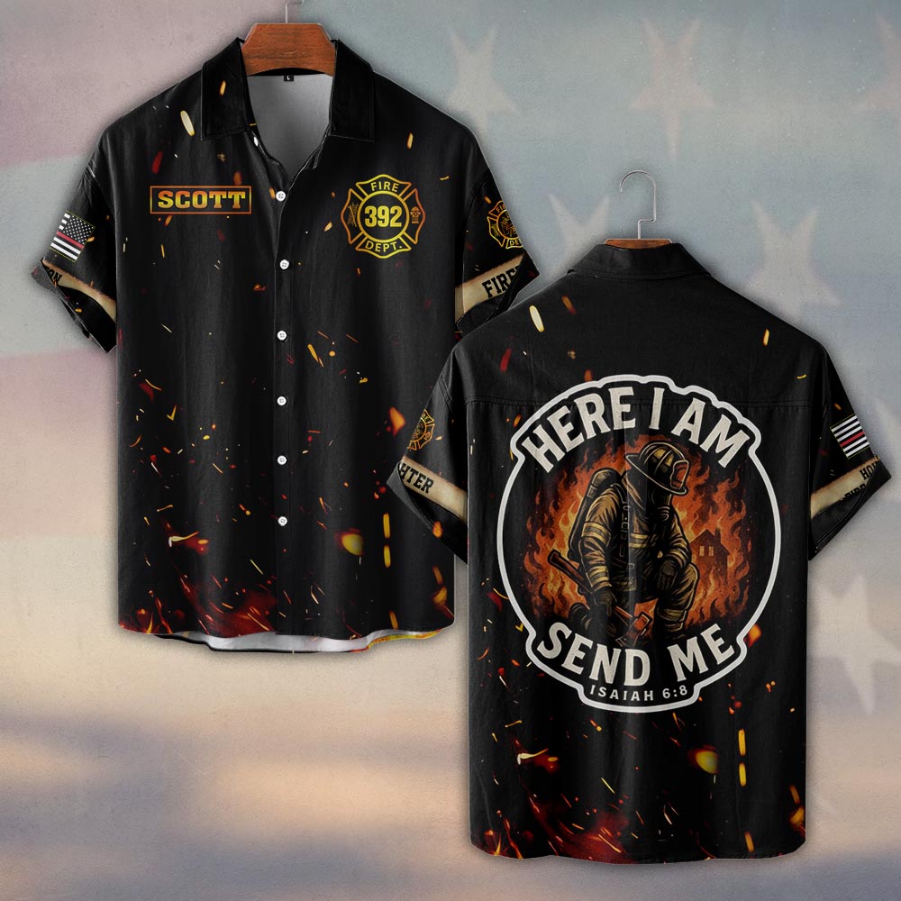 Custom Name & Number & Fire Department Here I Am, Send Me Isaiah 6:8 #DQH0372 – Short Sleeve Button Shirt