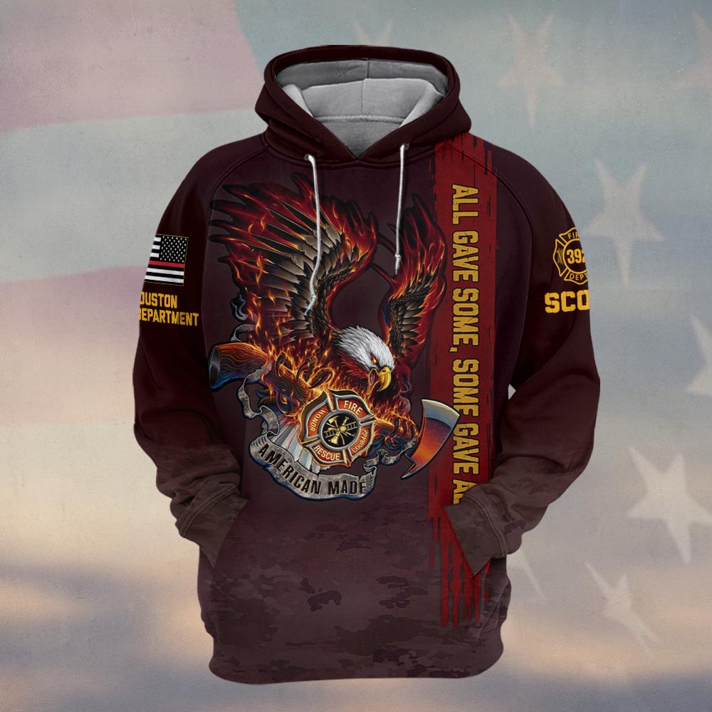 Custom Name & Number & Fire Dept All Gave Some American Made Firefighter Eagle #DQH0271 – Hoodie