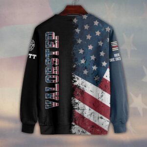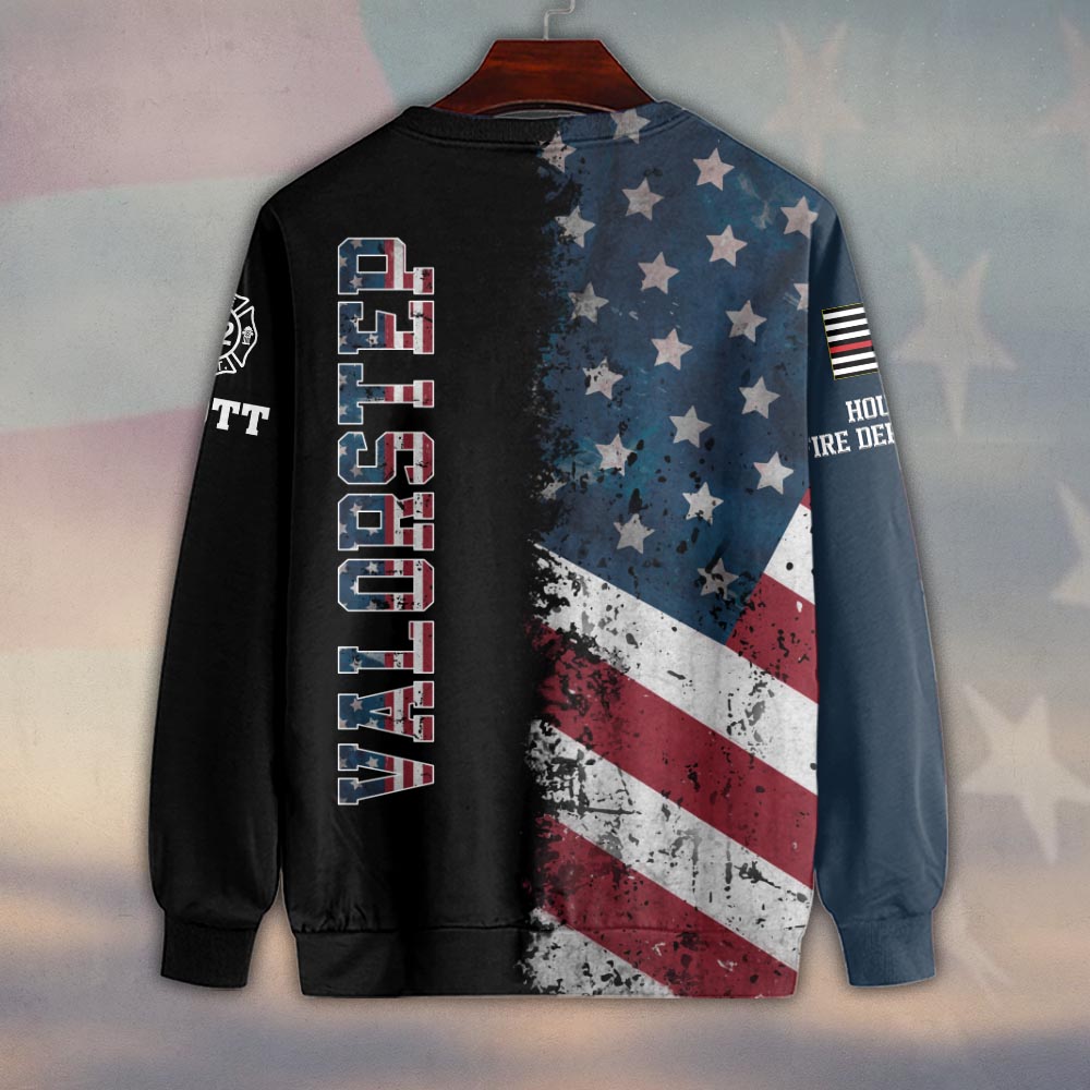 Custom Name, Number & Fire Dept American Flag Split Grunge Firefighter #DQH0282 – Sweatshirt