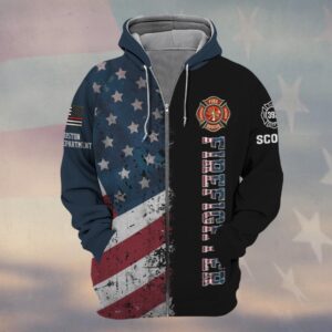 Be the first to review “Custom Name, Number & Fire Dept American Flag Split Grunge Firefighter #DQH0282 – Zip Hoodie”
