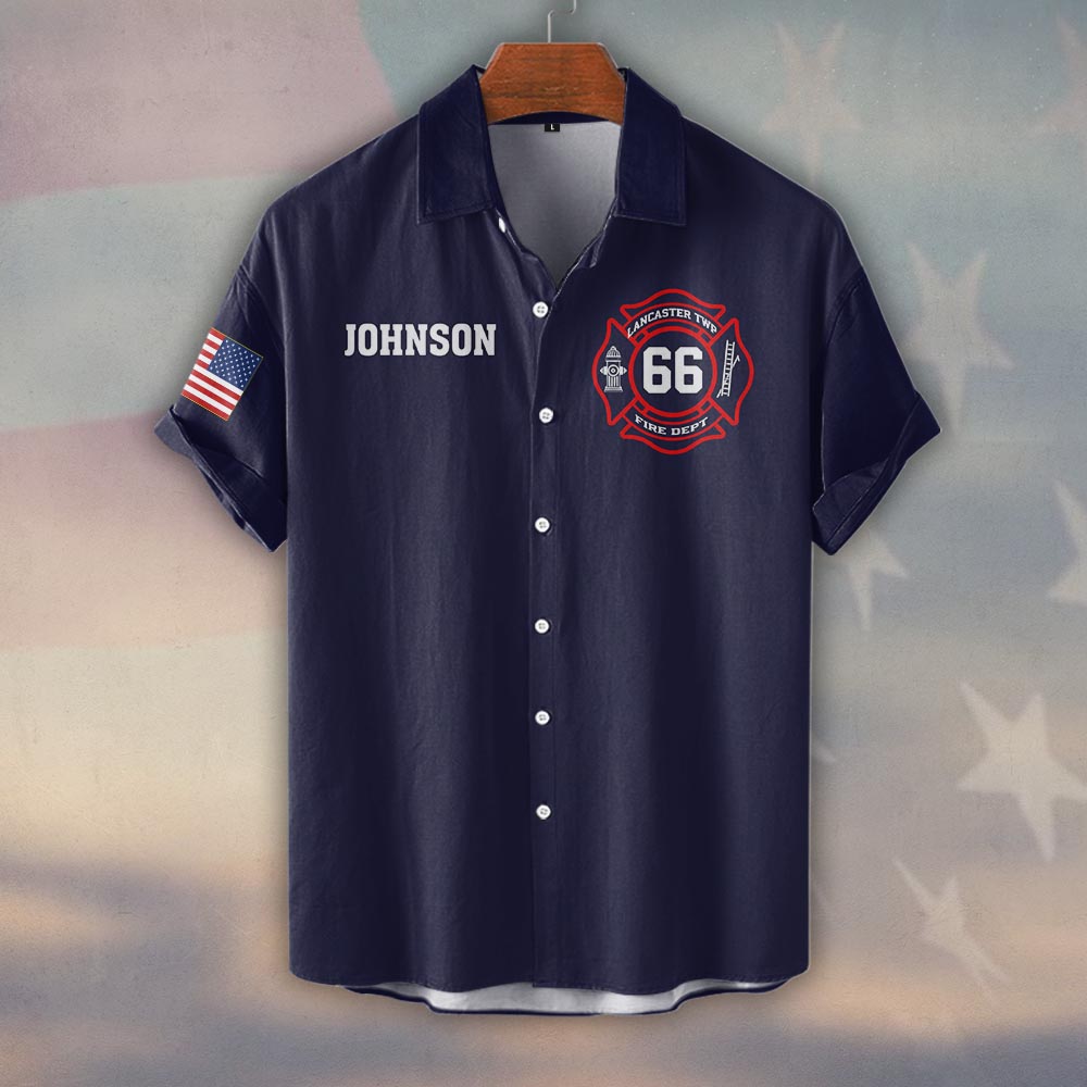 Custom Name, Number & Fire Dept Station Pride #DQH0396 – Short Sleeve Button Shirt
