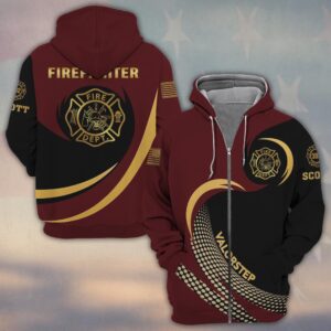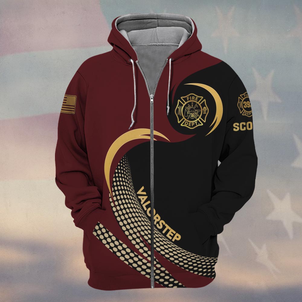 Custom Name & Number Line Of Valor Gold Edition Firefighter #DQH0279 – Zip Hoodie