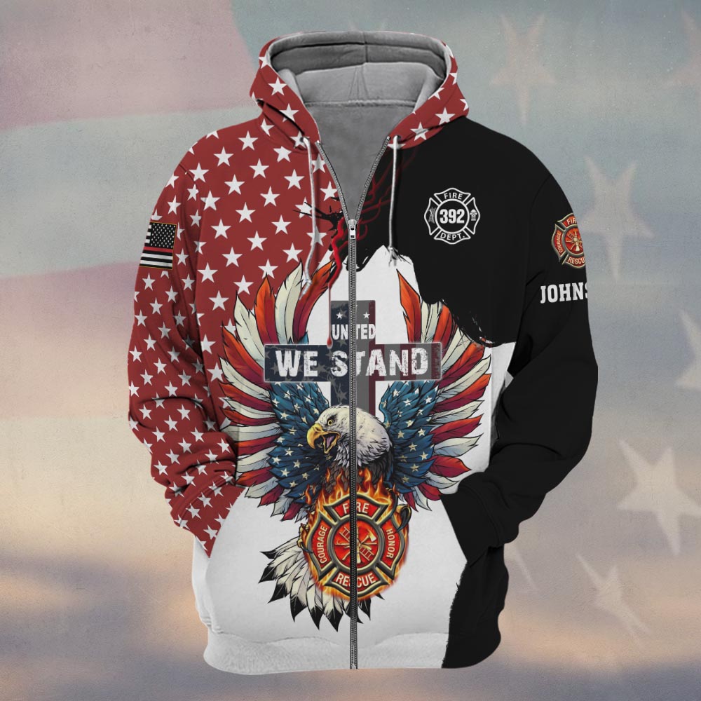 Custom Name & Numbers United We Stand Eagle Edition Firefighter #DQ0276 – Zip Hoodie