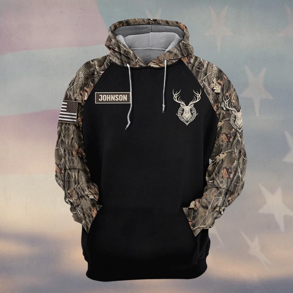 Custom Name Patriotic Deer Flag Camo #DQH0240 – Hoodie