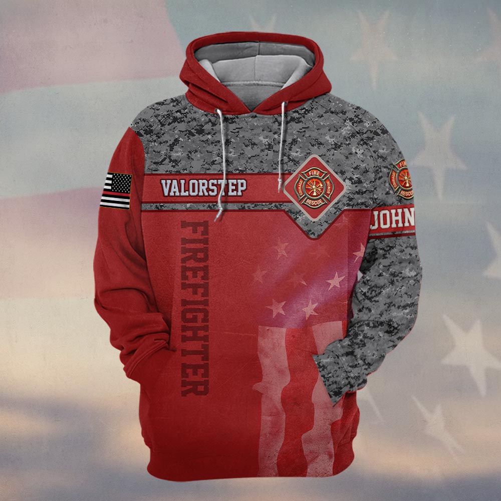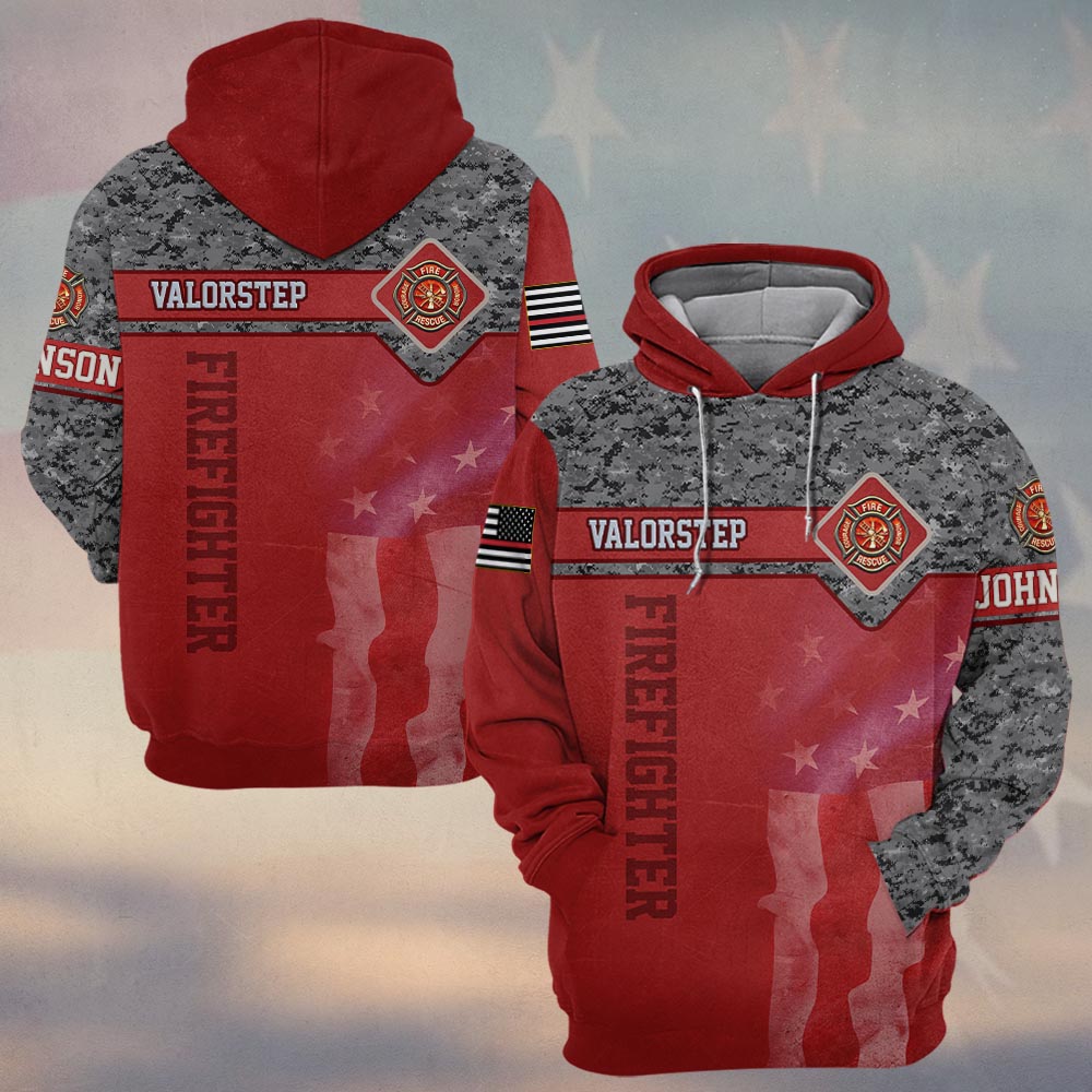 Custom Name Red Line Camo Firefighter #DQH0299 – Hoodie
