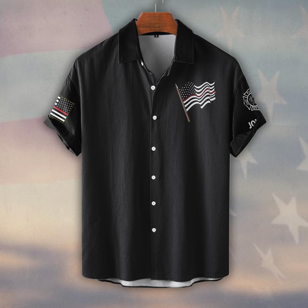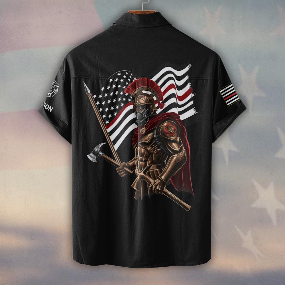 Custom Name Spartan Firefighter – The Guardian of Flames #DQH0205 – Short Sleeve Button Shirt