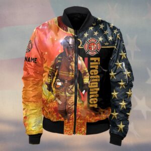 Custom Name Stars & Flames Hero Firefighter #DQH0133 – Bomber Jacket