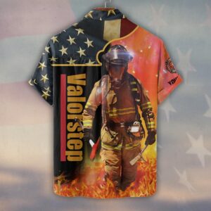 Custom Name Stars & Flames Hero Firefighter #DQH0133 – Short Sleeve Button Shirt