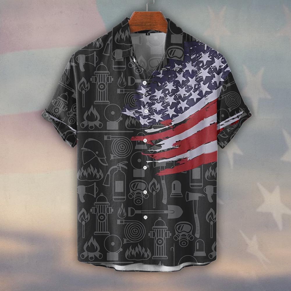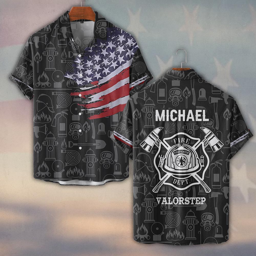 Custom Name Stars & Tools of Honor Firefighter #DQH0136 – Short Sleeve Button Shirt