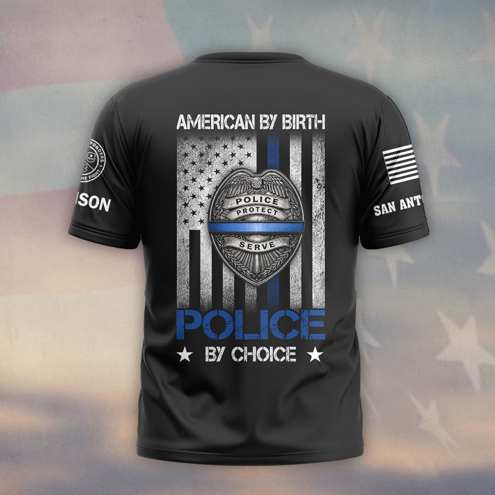 Custom Name & Station American By Birth Police By Choice Law Enforcement #DQH0560 – T-shirt