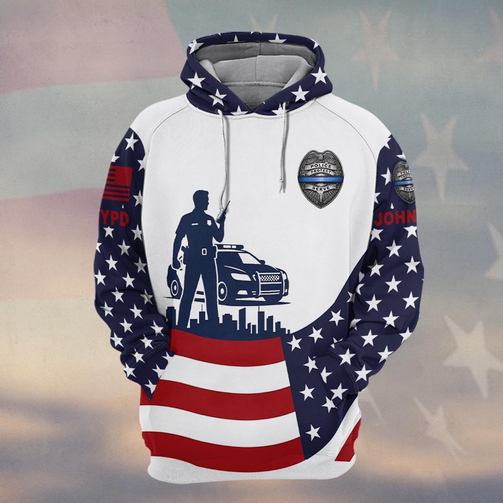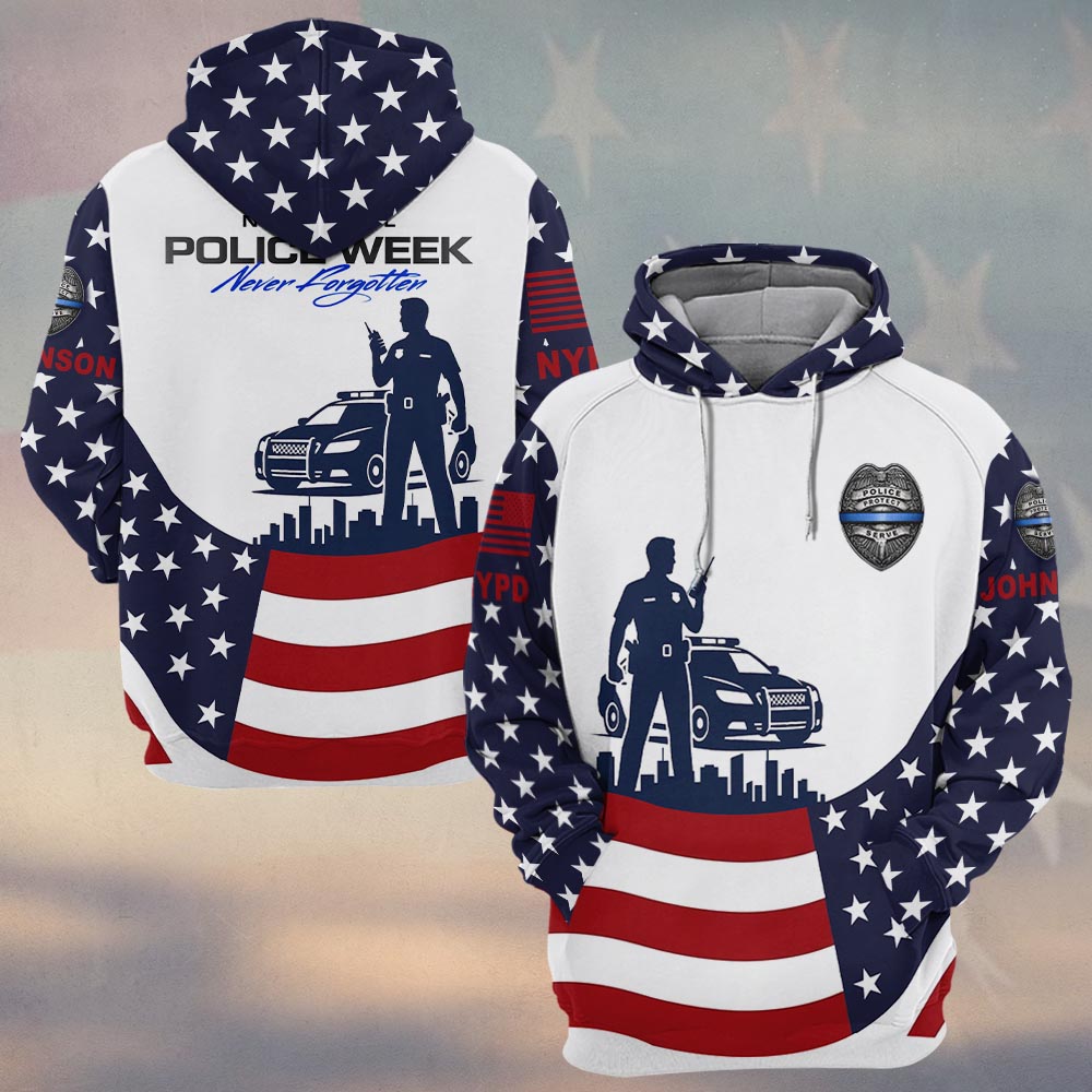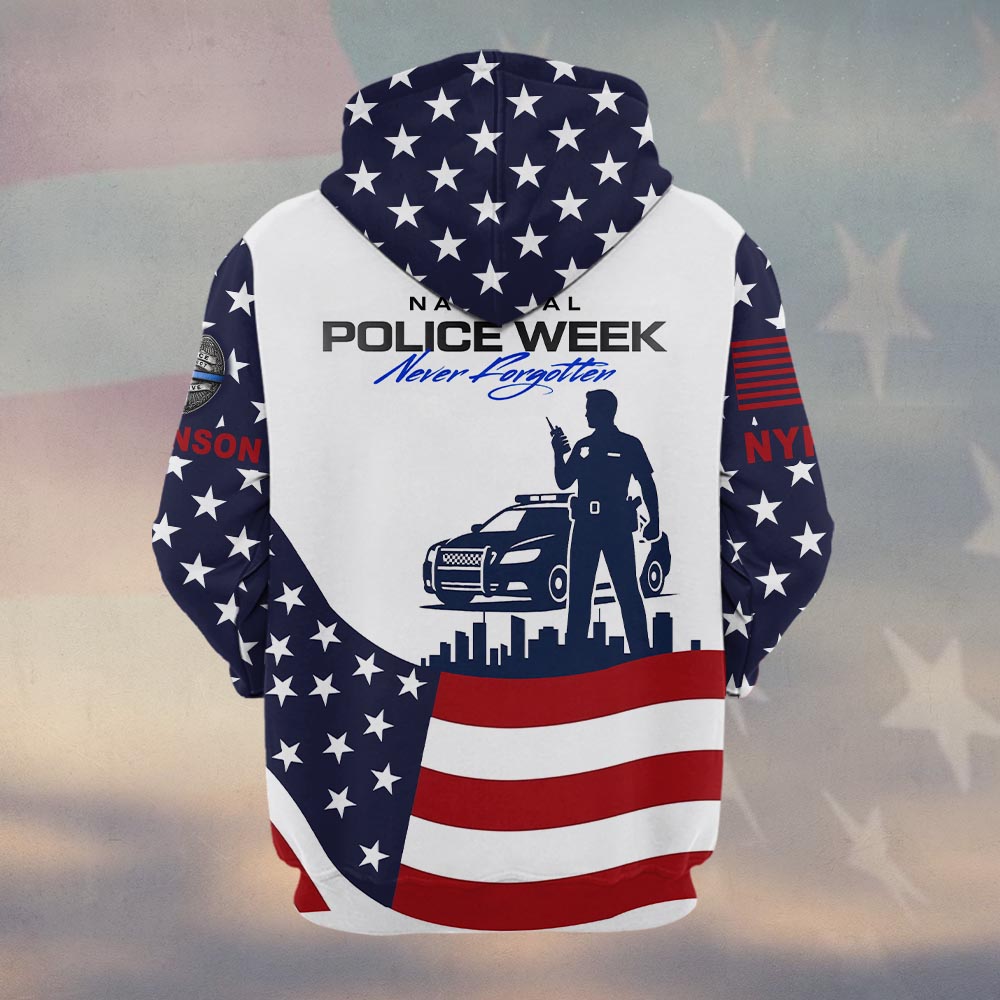 Custom Name & Station American Flag National Police Week Never Forgotten #DQH0618 – Hoodie