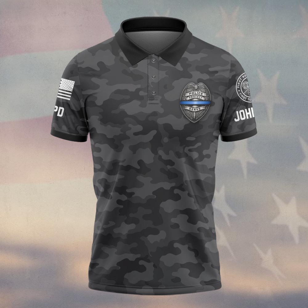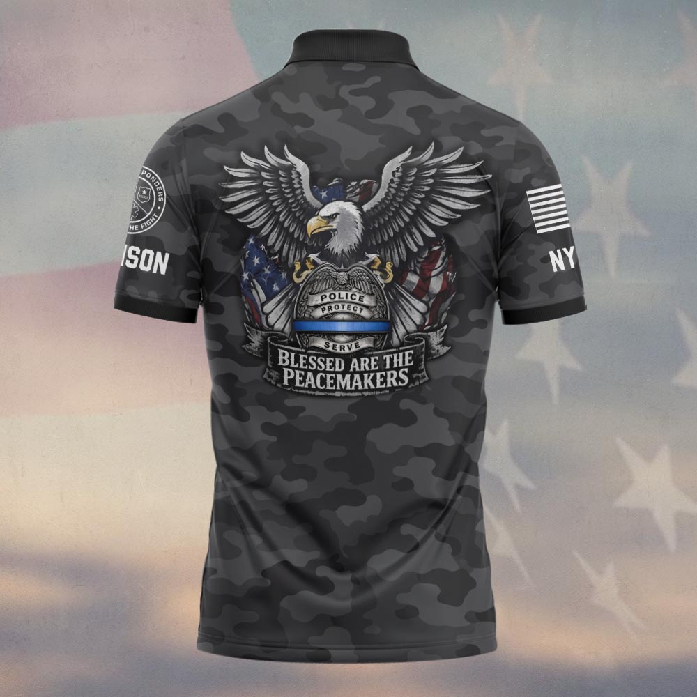Custom Name & Station Blessed Are The Peacemakers Thin Blue Line Camo Law Enforcement #DQH0611 – Polo