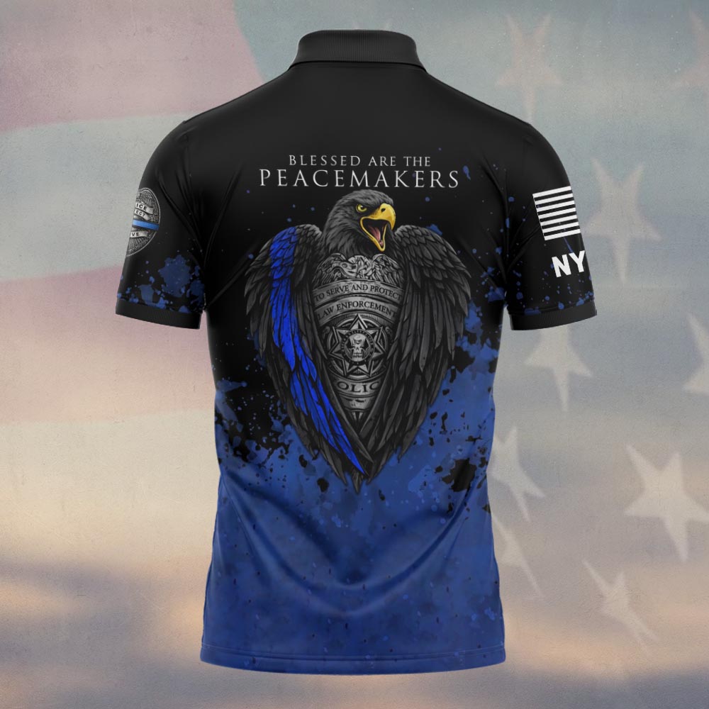 Custom Name & Station Blessed Are The Peacemakers Thin Blue Line Eagle Law Enforcement #DQH0611 – Polo