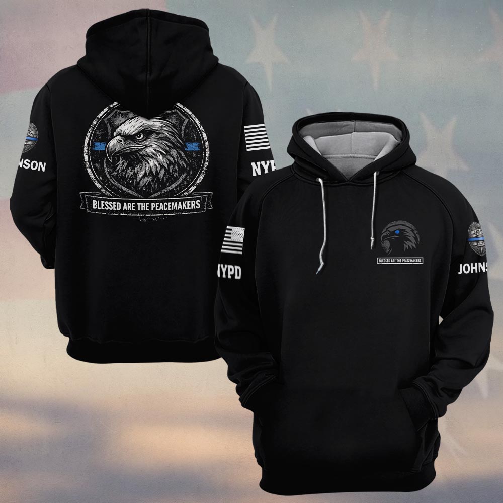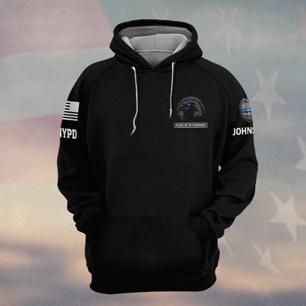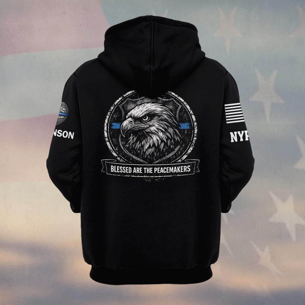 Custom Name & Station Blue Line Eagle Blessed Are The Peacemakers Law Enforcement #DQH0602 – Hoodie