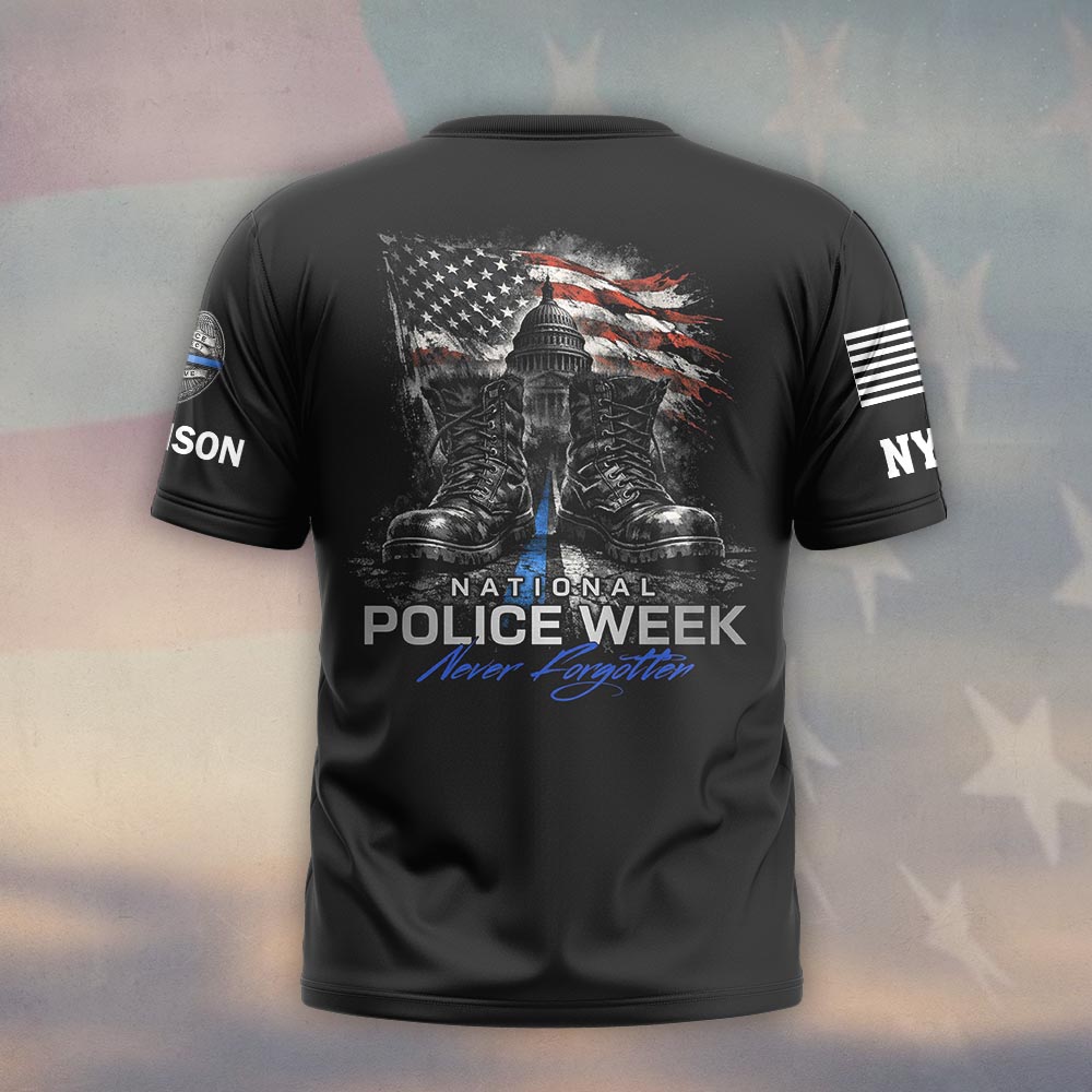 Custom Name & Station First Responders Gear National Police Week Never Forgotten #DQH0619 – T-shirt
