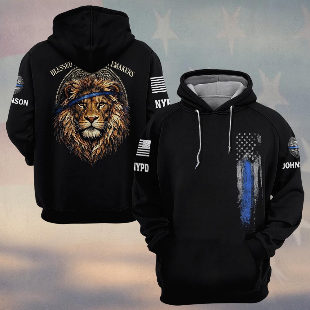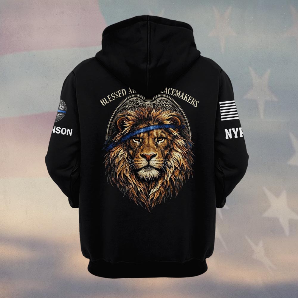 Custom Name & Station Justice Lion Law Enforcement Blessed Are The Peacemakers #DQH0607 – Hoodie