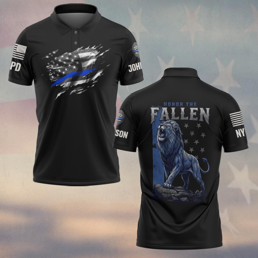 Custom Name & Station Lion Justice Honor The Fallen Law Enforcement Memorial #DQH0633 – Polo