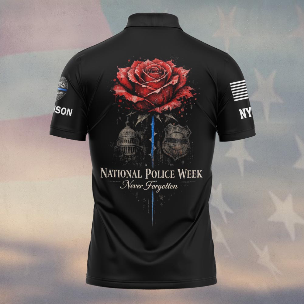 Custom Name & Station National Police Week Never Forgotten Red Rose Law Enforcement #DQH0623 – Polo
