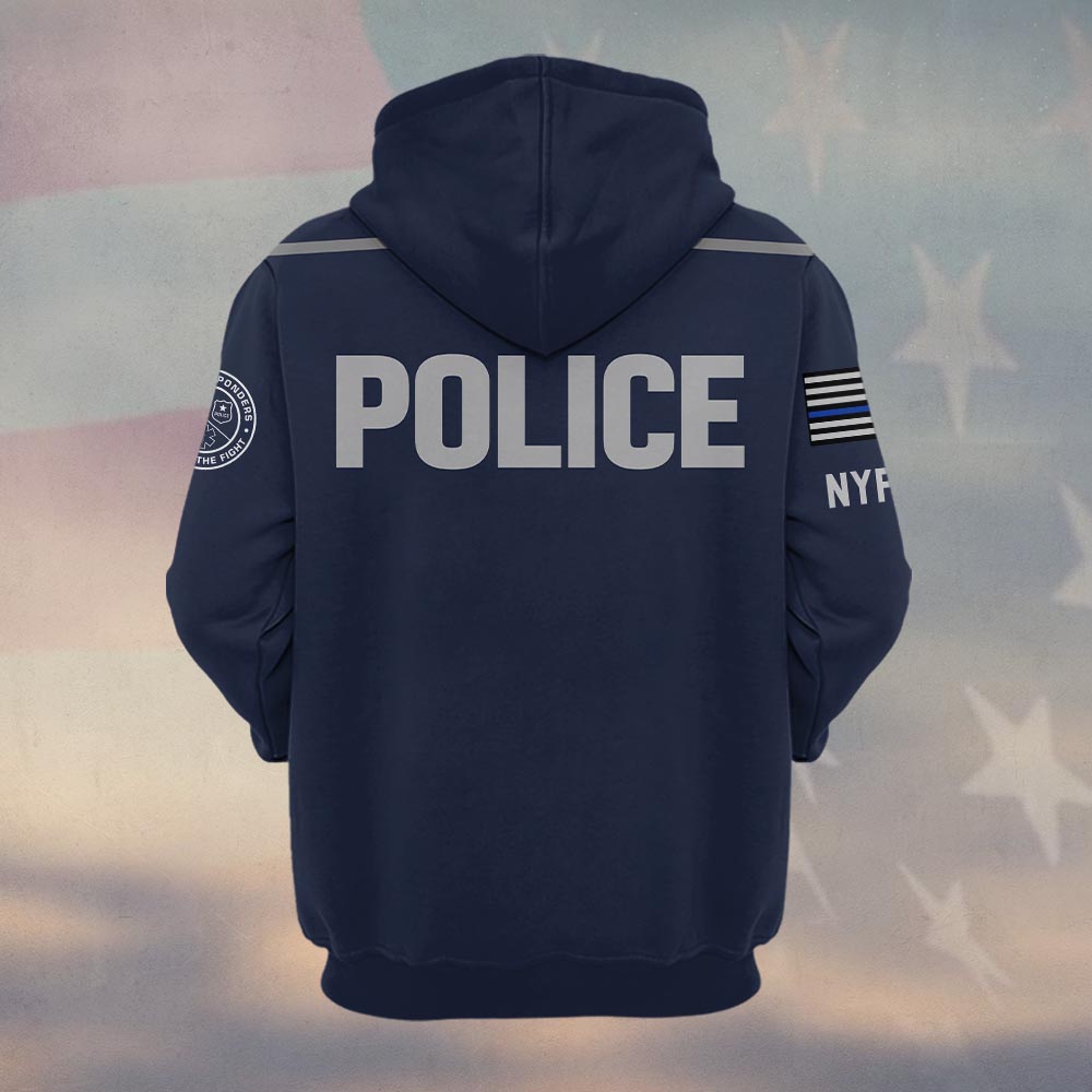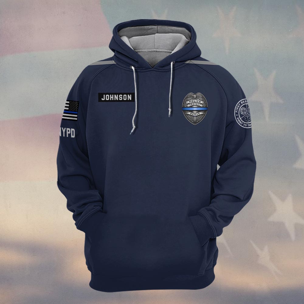 Custom Name & Station Police Uniform Style Thin Blue Line Badge Law Enforcement #DQH0615 – Hoodie