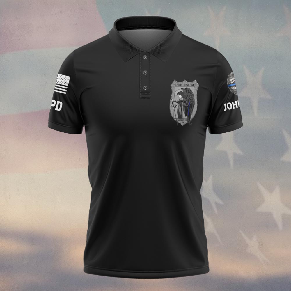 Custom Name & Station St Michael Defend Us In Battle Law Enforcement #DQH0553 – Polo