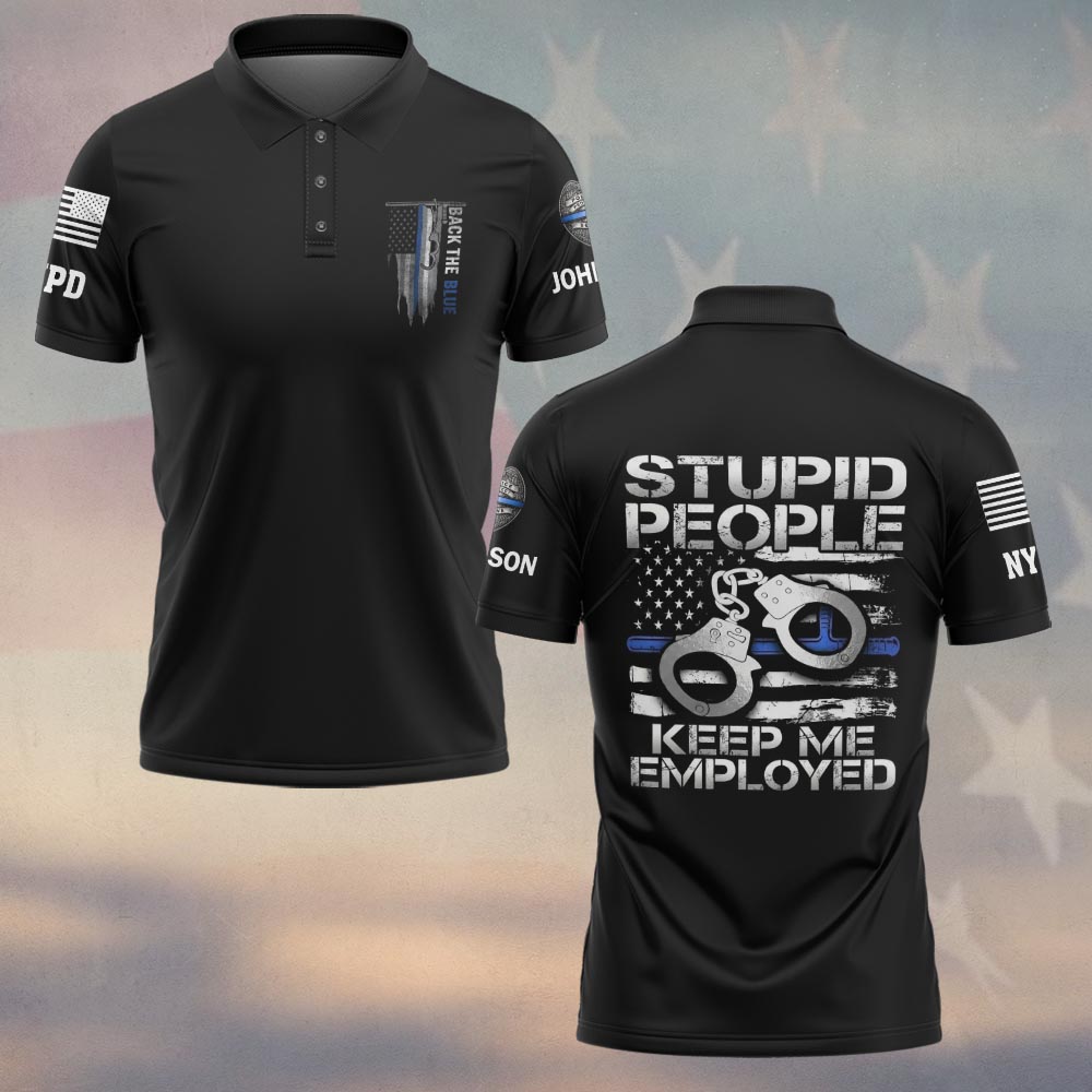 Custom Name & Station Stupid People Keep Me Employed Law Enforcement #DQH0554 – Polo