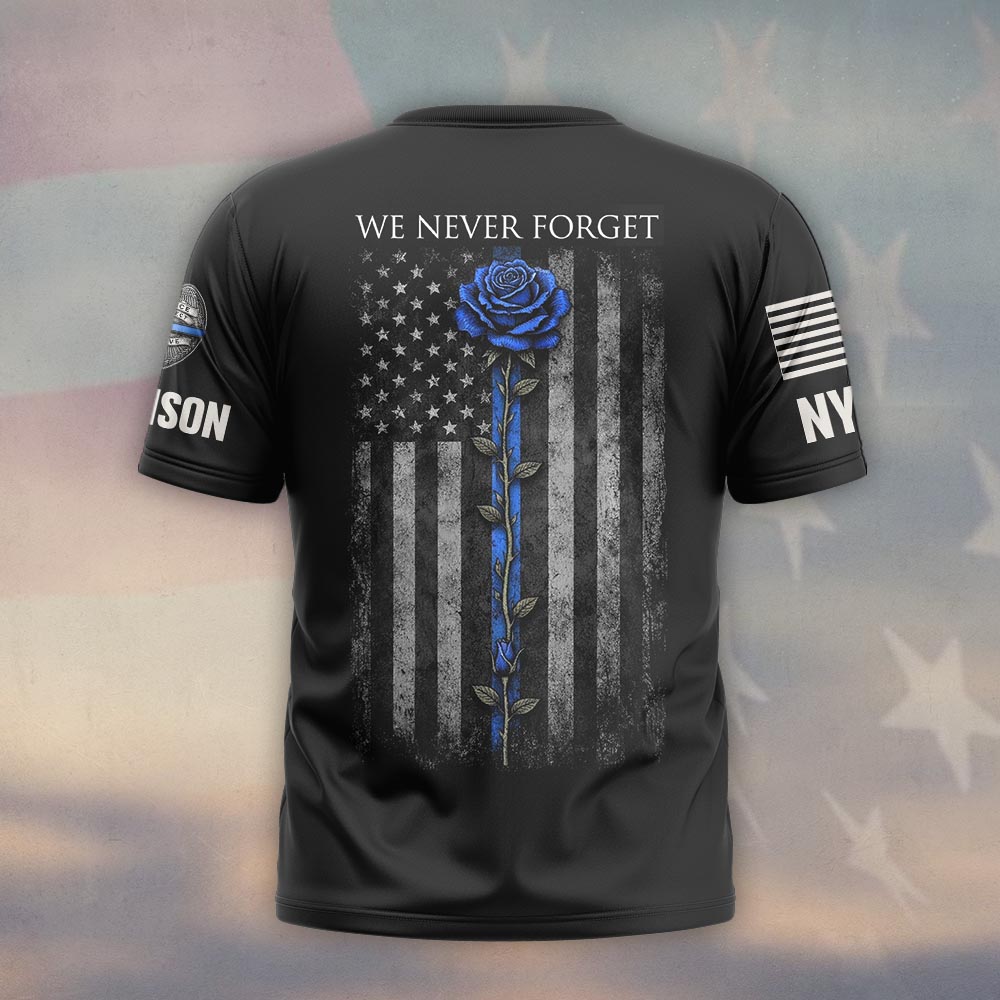 Custom Name & Station We Never Forget Police Week Memorial Blue Rose #DQH0631 – T-shirt