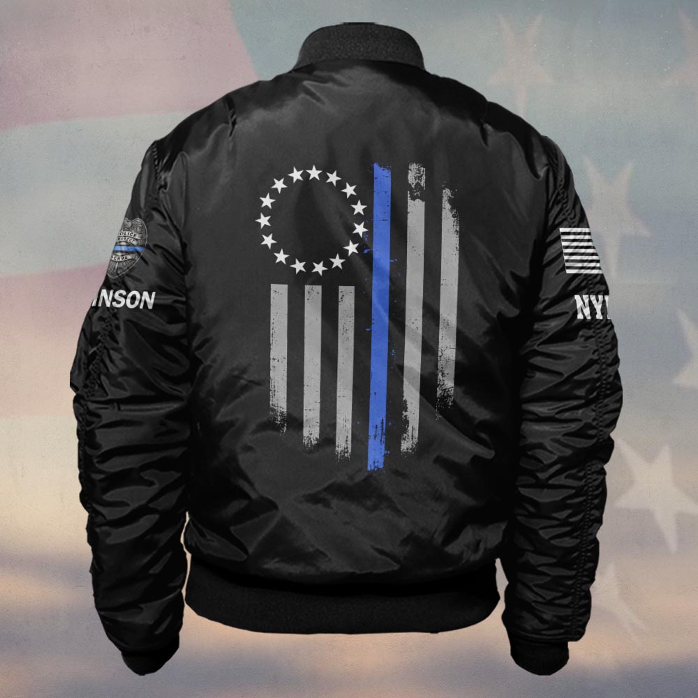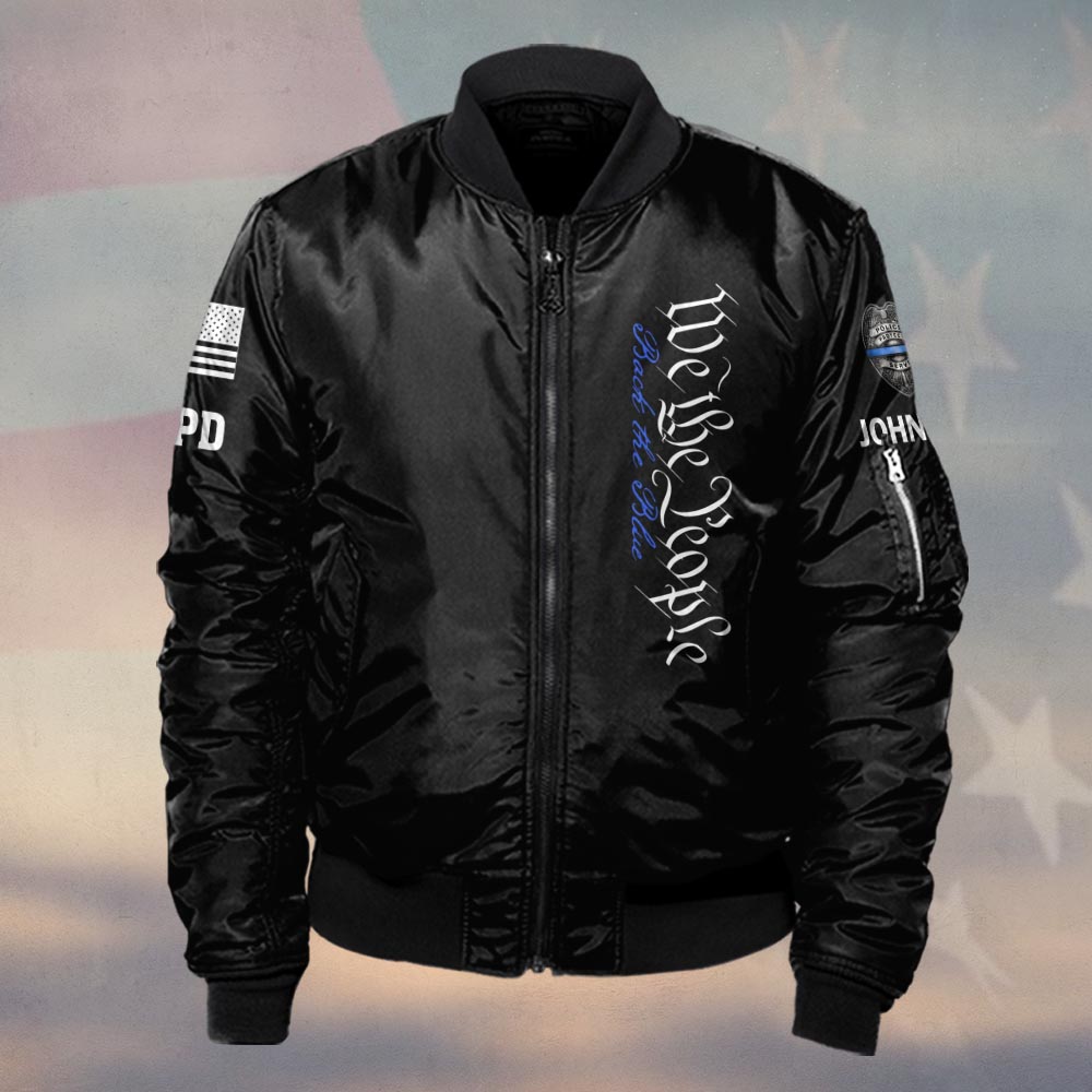 Custom Name & Station We The People Thin Blue Line Police #DQH0476 – Bomber Jacket